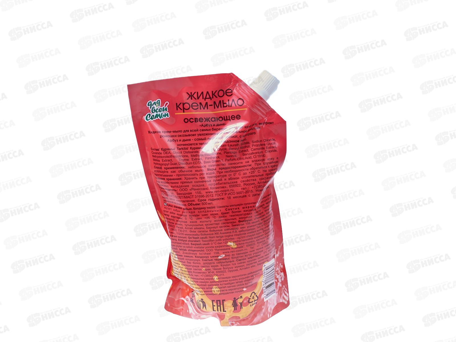 ДЛЯ ВСЕЙ СЕМЬИ Крем-мыло Освежающее Арбуз и дыня 500мл дой 2695 *12