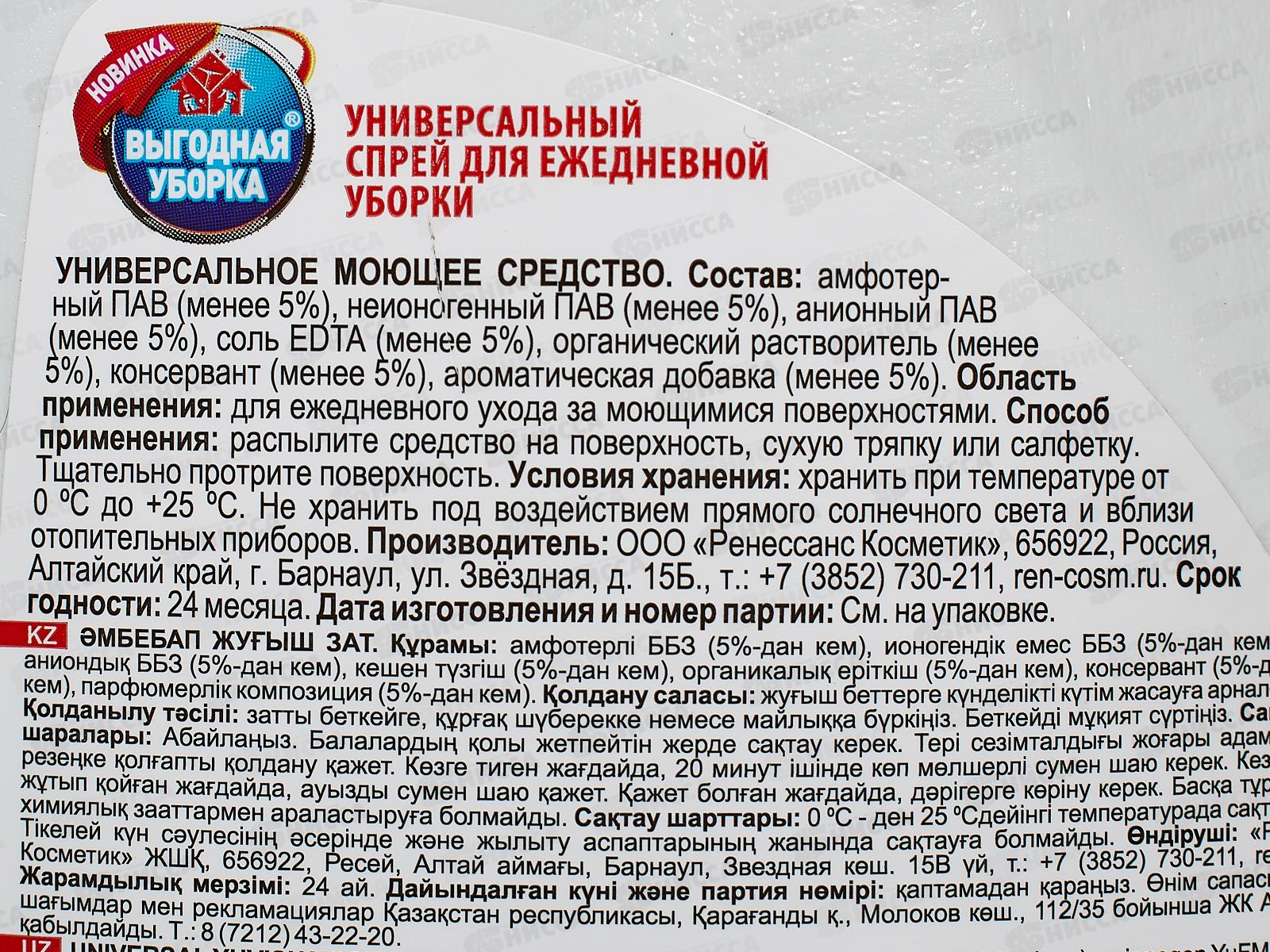 ВЫГОДНАЯ УБОРКА Универсальный спрей для ежедневной уборки 500мл 3565 *12