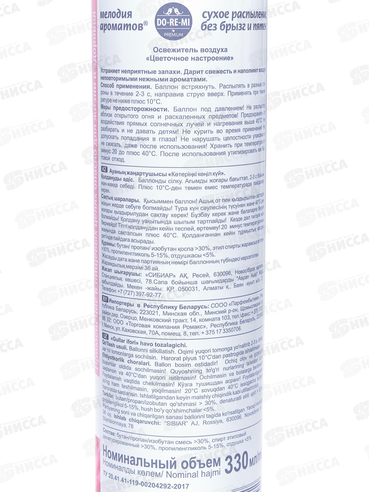 ДО-РЕ-МИ ПРЕМИУМ ароматизатор Цветочное настроение 330мл