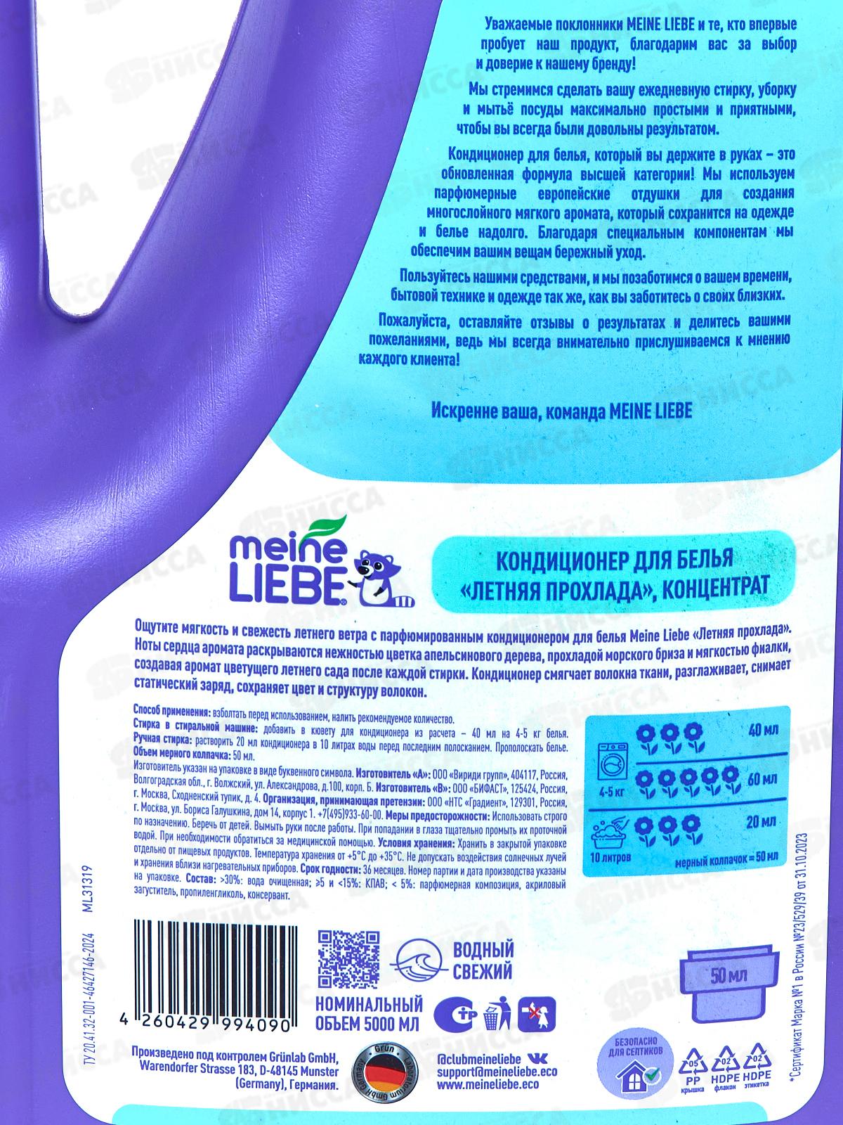 MEINE LIEBE кондиционер Летняя прохлада 5л концентрат *2