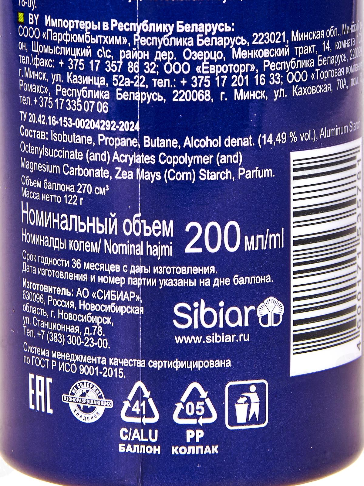 Состав: изобутен, пропан, бутан, денатурированный спирт (14,49% об.), алюминиевый крахмал октенилсукцинат, сополимер акрилатов, карбонат магния, кукурузный крахмал, парфюмерная композиция.