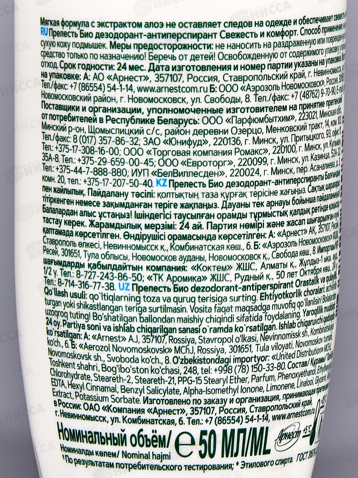 Прелесть БИО дезодорант ролик Свежесть и комфорт 50мл
