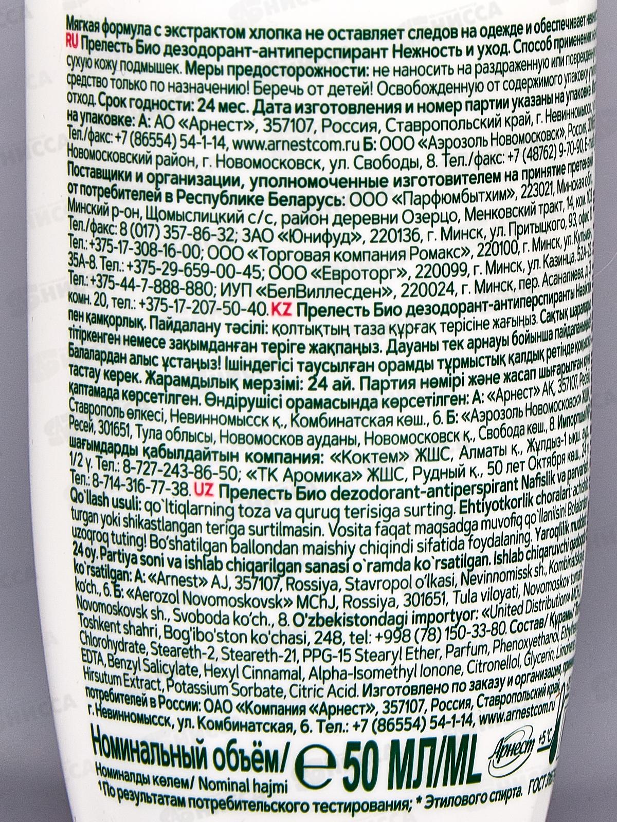 Прелесть БИО дезодорант ролик Нежность и уход 50мл
