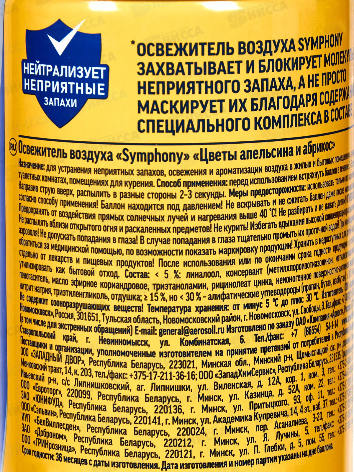 Symphony освежитель воздуха 300см Цветы апельсина и абрикос *6