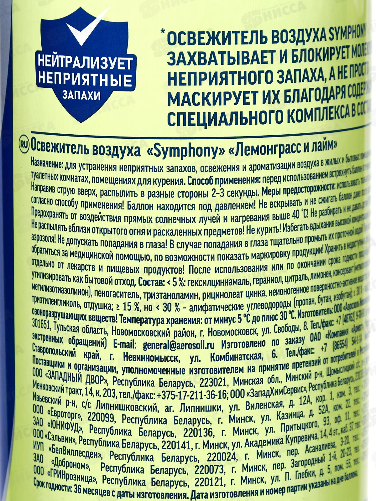 Symphony освежитель воздуха 300см3 Лемонграсс и лайм *6