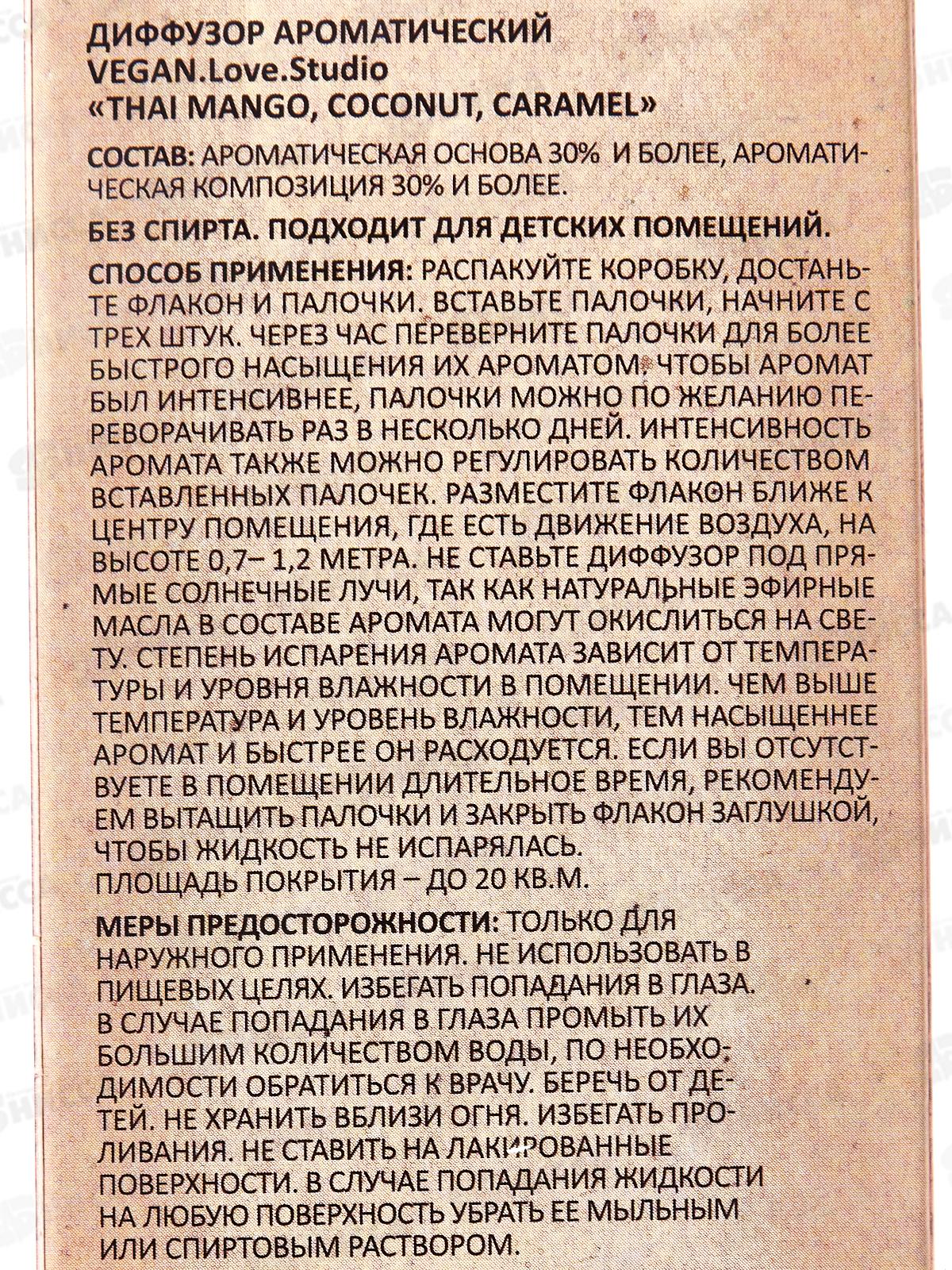 Диффузор аромат Vegan L.S. Thal Mango Coconut Caramel 100мл *18