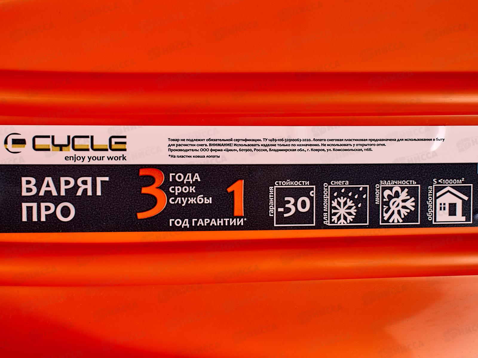 Лопата снеговая ЦИКЛ ПРО Варяг (CYCLE PRO Varyag) 400*400мм, с алюминиевой планкой, без черенка *5