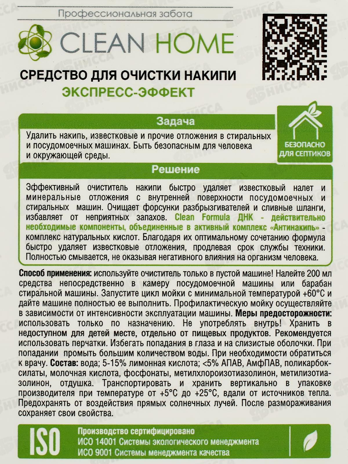 CLEAN HOME Средство для очистки накипи экспресс-эффект 1л *10