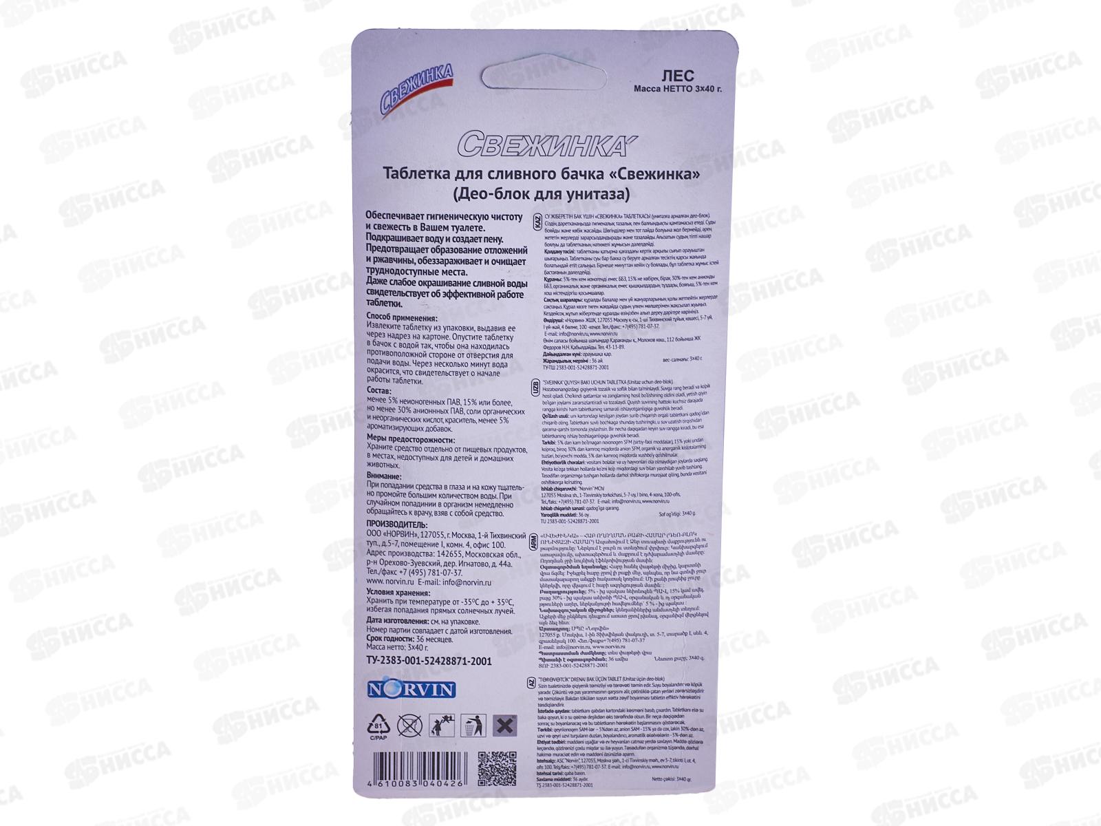 СВЕЖИНКА таблетка для сливного бачка 3шт ХВОЯ *12