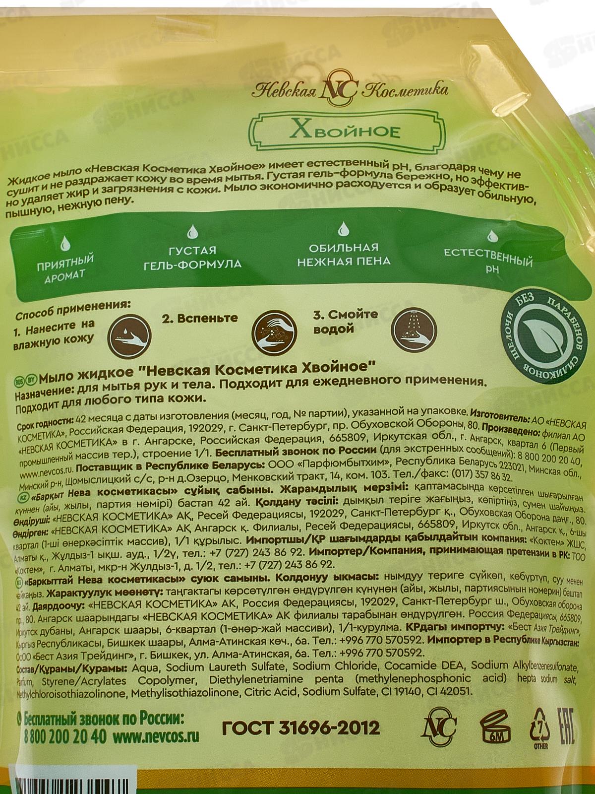 Невская Косметика ХВОЙНОЕ мыло жидкое 1л дой-пак *8