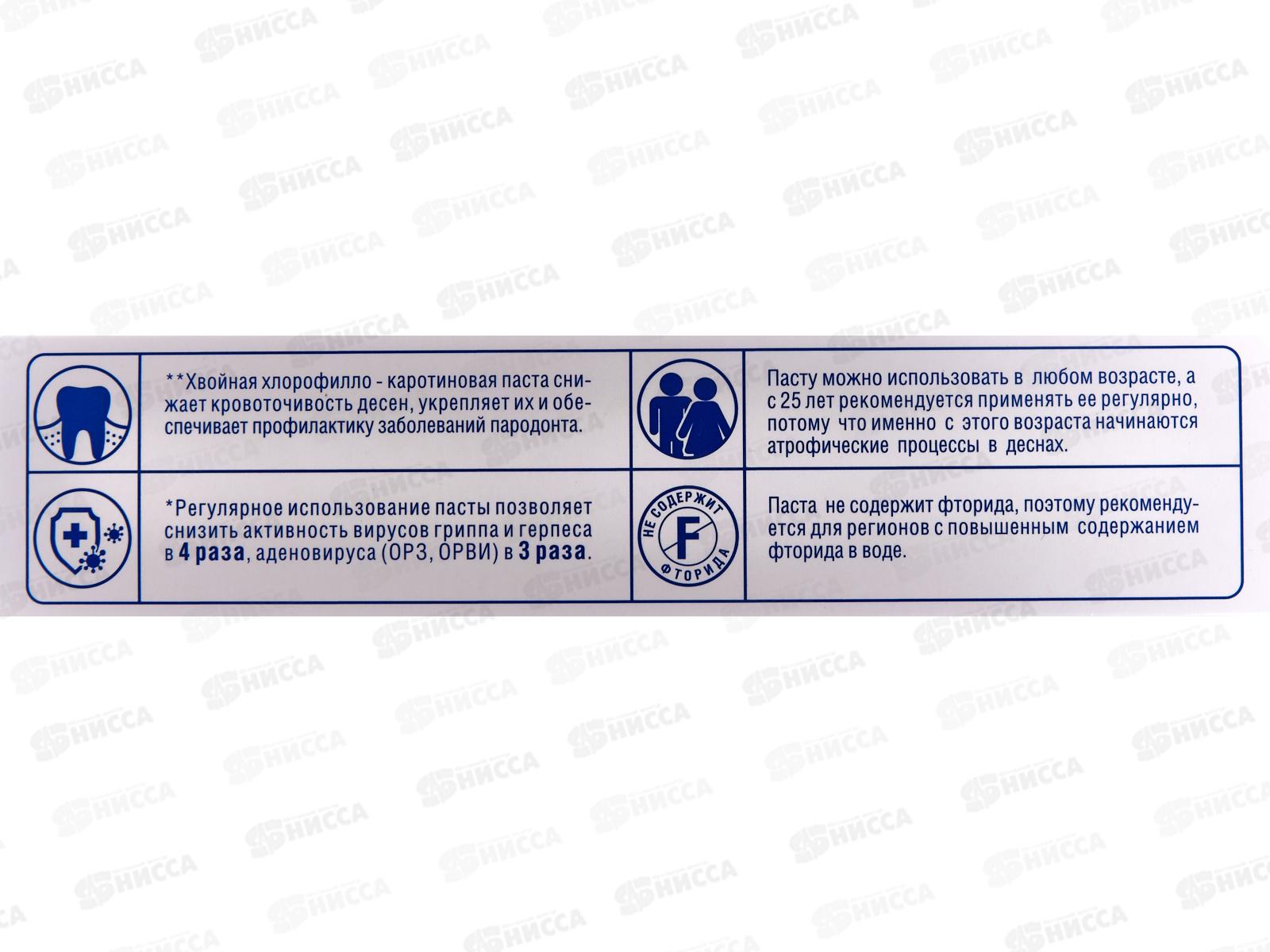 Состав: карбонат кальция, вода, сорбитол, гидратированный диоксид кремния, хвойная паста с хлорофиллом и каротином, лаурилсульфат натрия, ксантановая камедь, метилпарабен натрия, пропилпарабен натрия, ароматизатор, сахаринат натрия.
