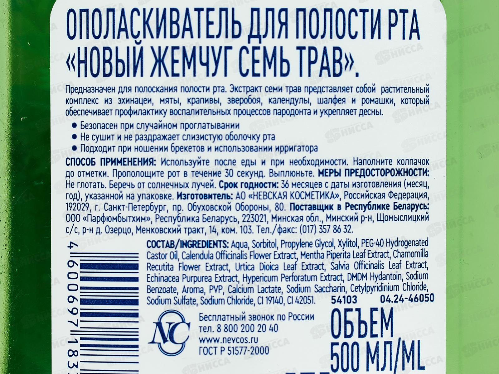 НК НОВЫЙ ЖЕМЧУ Г Ополаскиватель для полости рта Семь трав 500мл