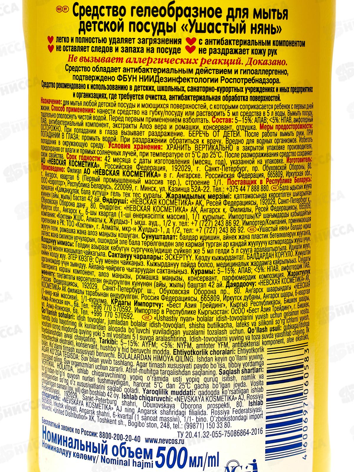 Ушастый нянь гель для детской посуды 0,5литра Ромашка *20