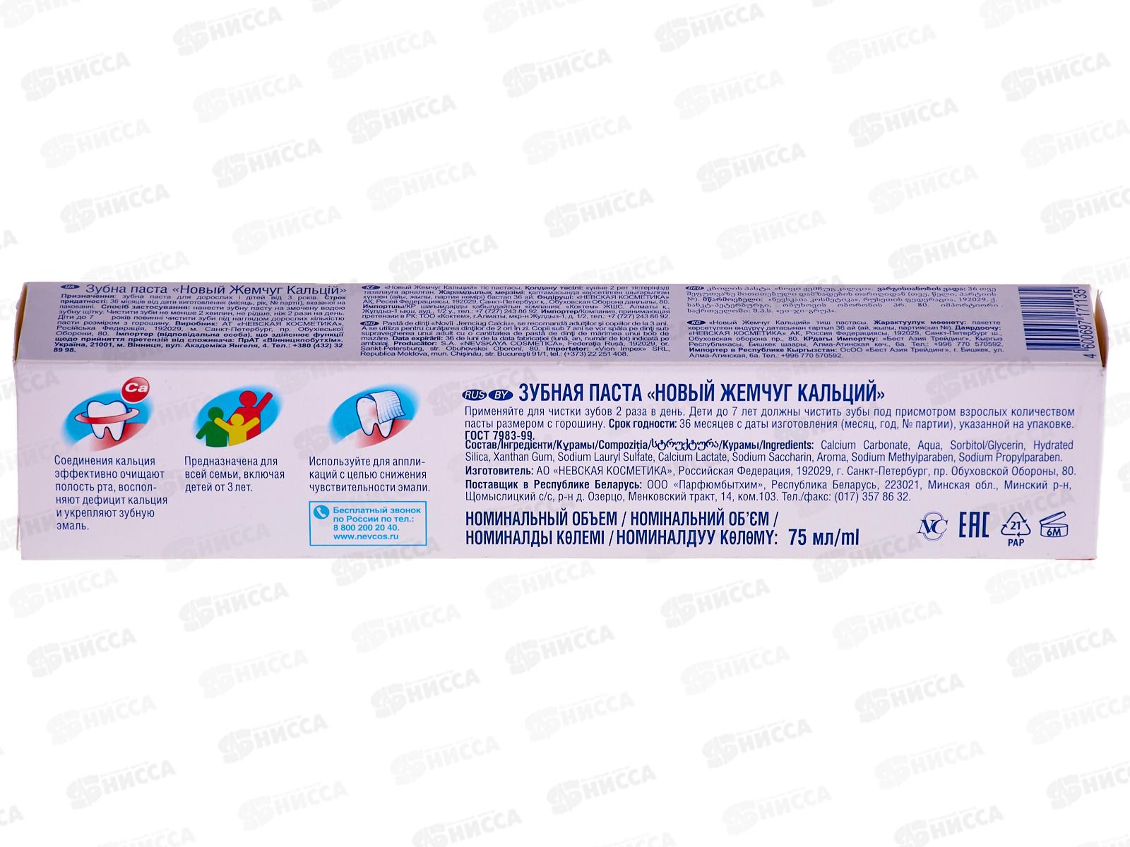 Невская Косметика НОВЫЙ ЖЕМЧУГ 75мл Кальций зубная паста в футляре *6/36