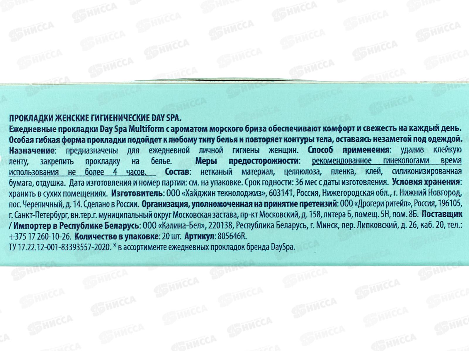 Day Spa прокладки ежедневные мультиф Бриз 20шт *32