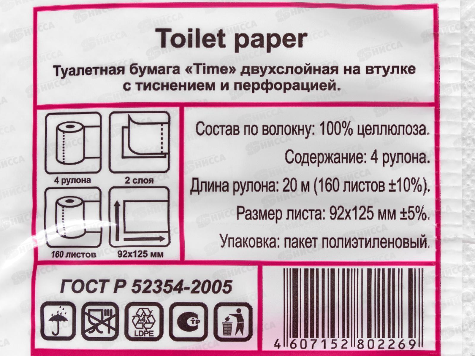 Бум. туалет. TIME 2сл, 4рул на втулке белая *16