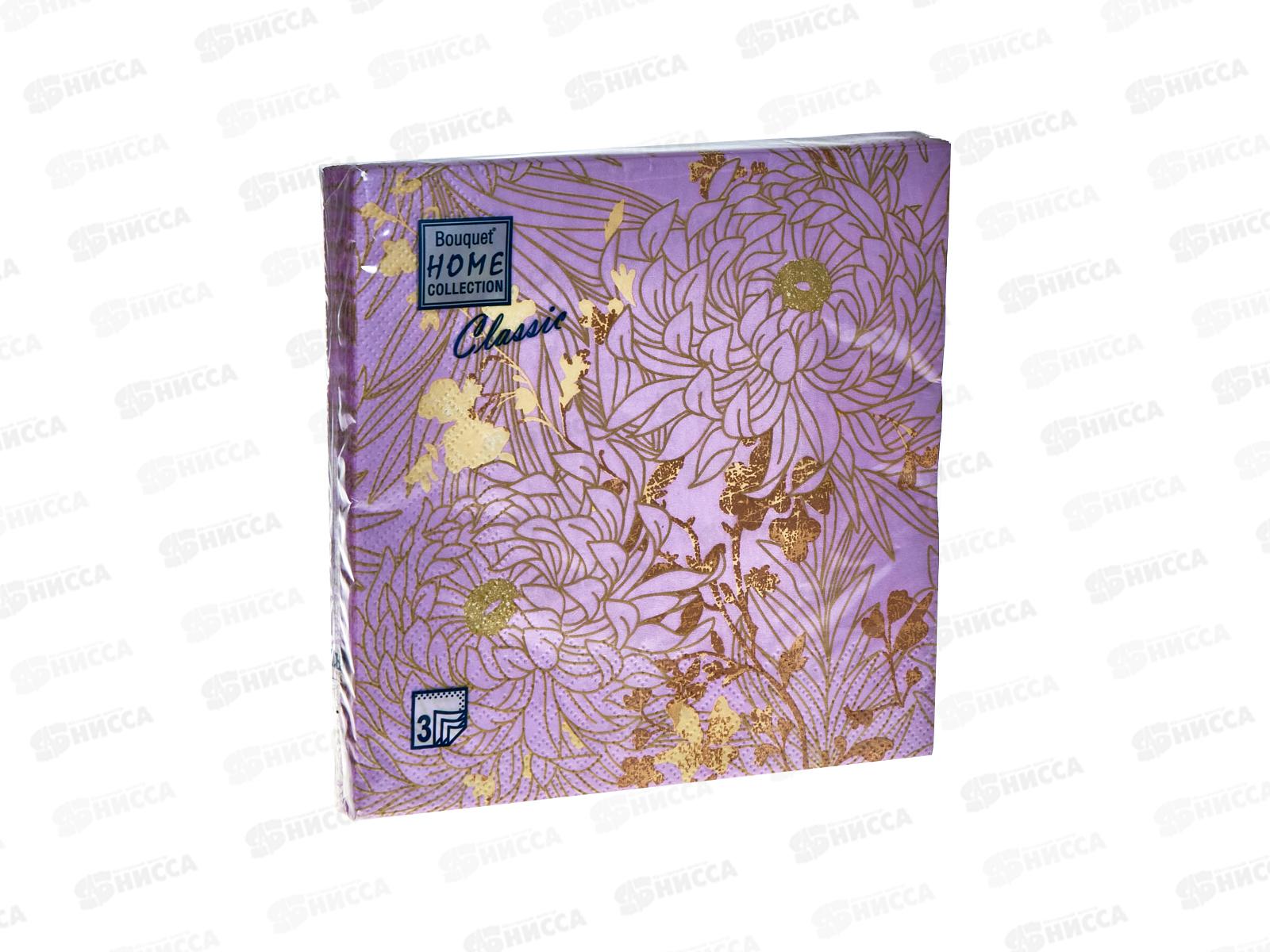 Салфетки 3 слойные 20 листов 33*33 Bouquet Home Золотые цветы на сиреневом,57758*12
