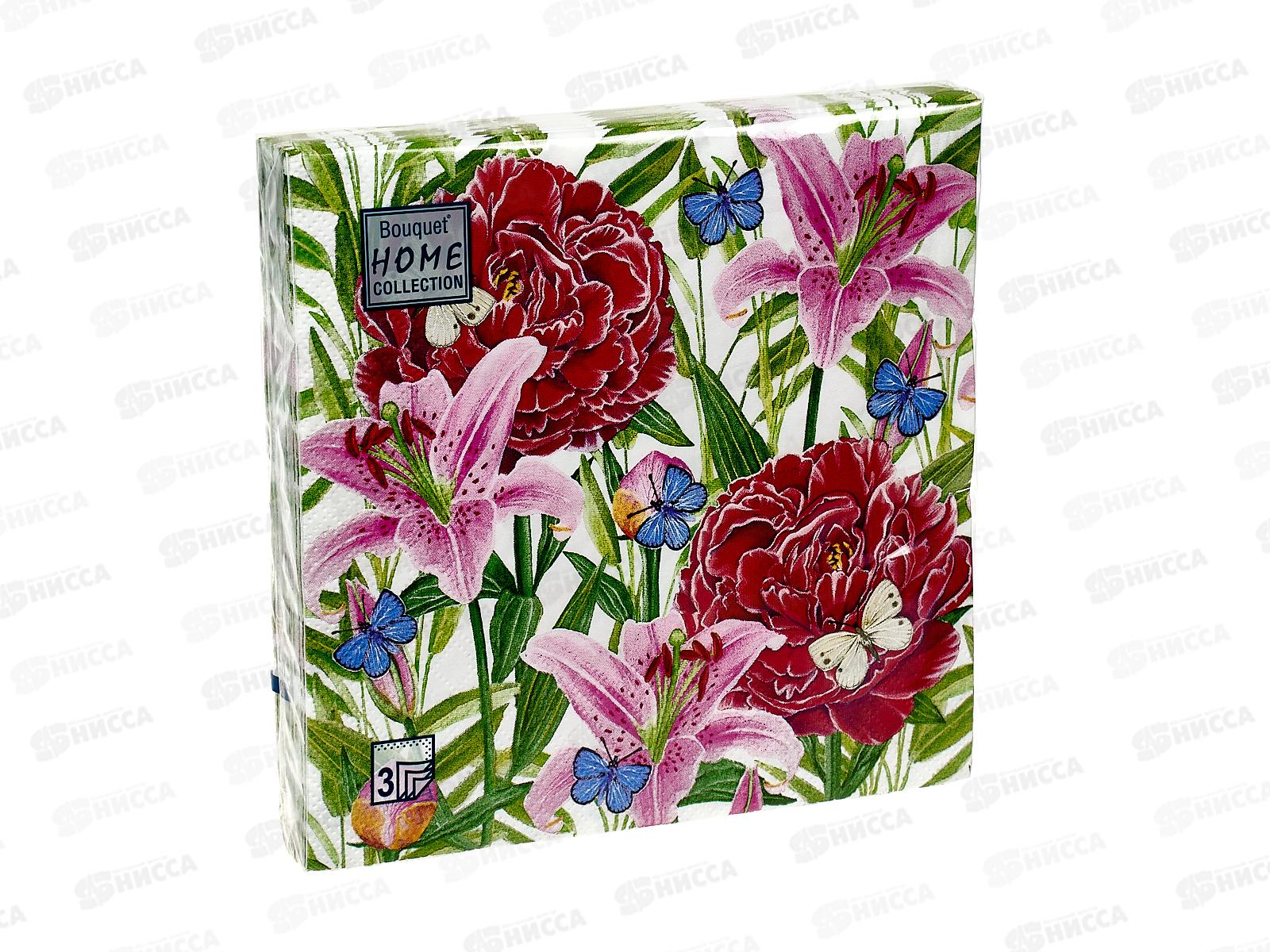 Салфетки 3слойные 20 листов 33*33 Bouquet Home Пионы и лилии,25005*12