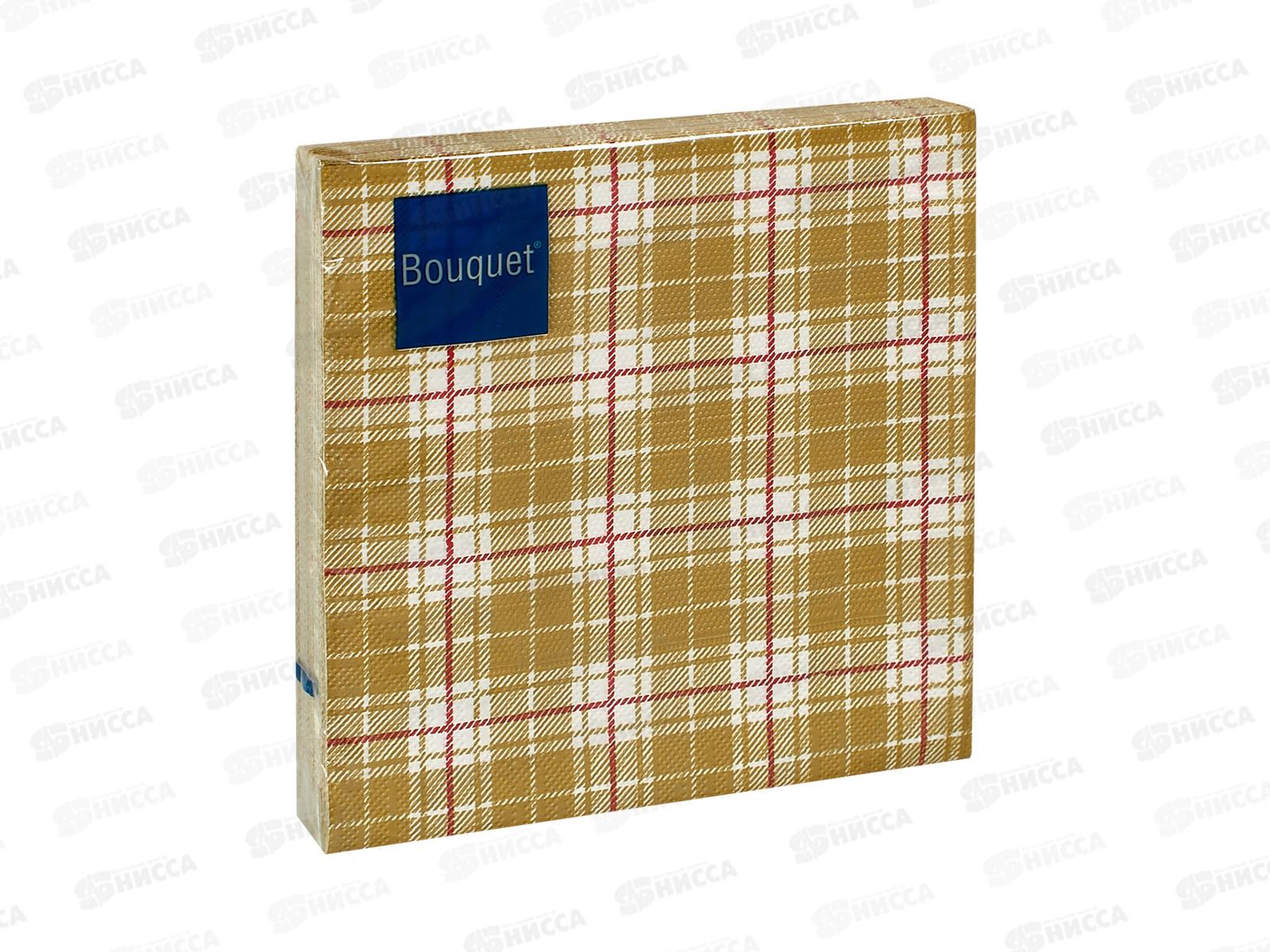 Салфетки 3 слойные 20 листов 33*33 Bouquet Клетка золотая *12 25080