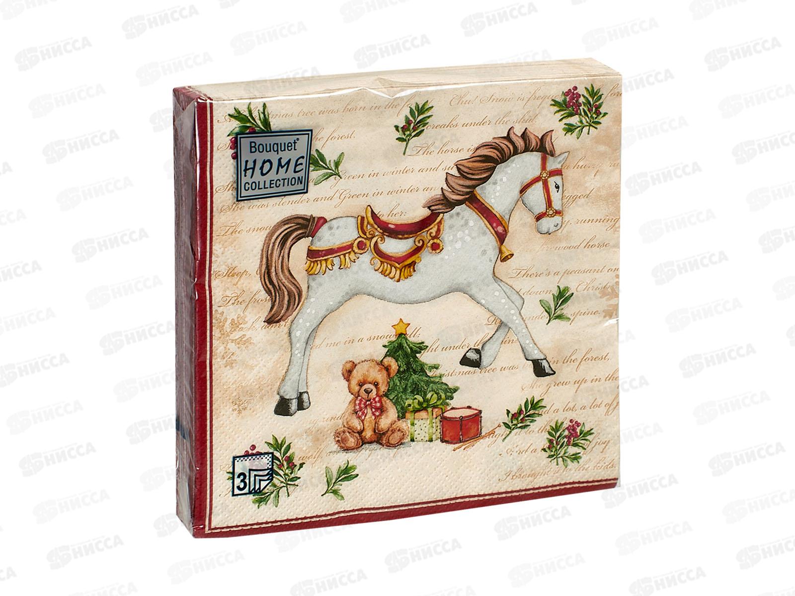 Салфетки 3сл 20л 33*33 Bouquet Home Новогод.лошадка.Крем.фон 25403*12