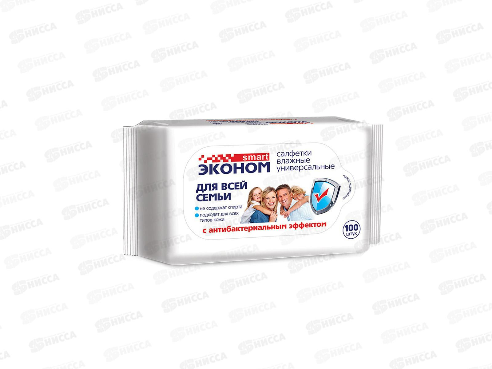 • Smart салфетки влажные эконом 100шт антибактериальные 30258 *16