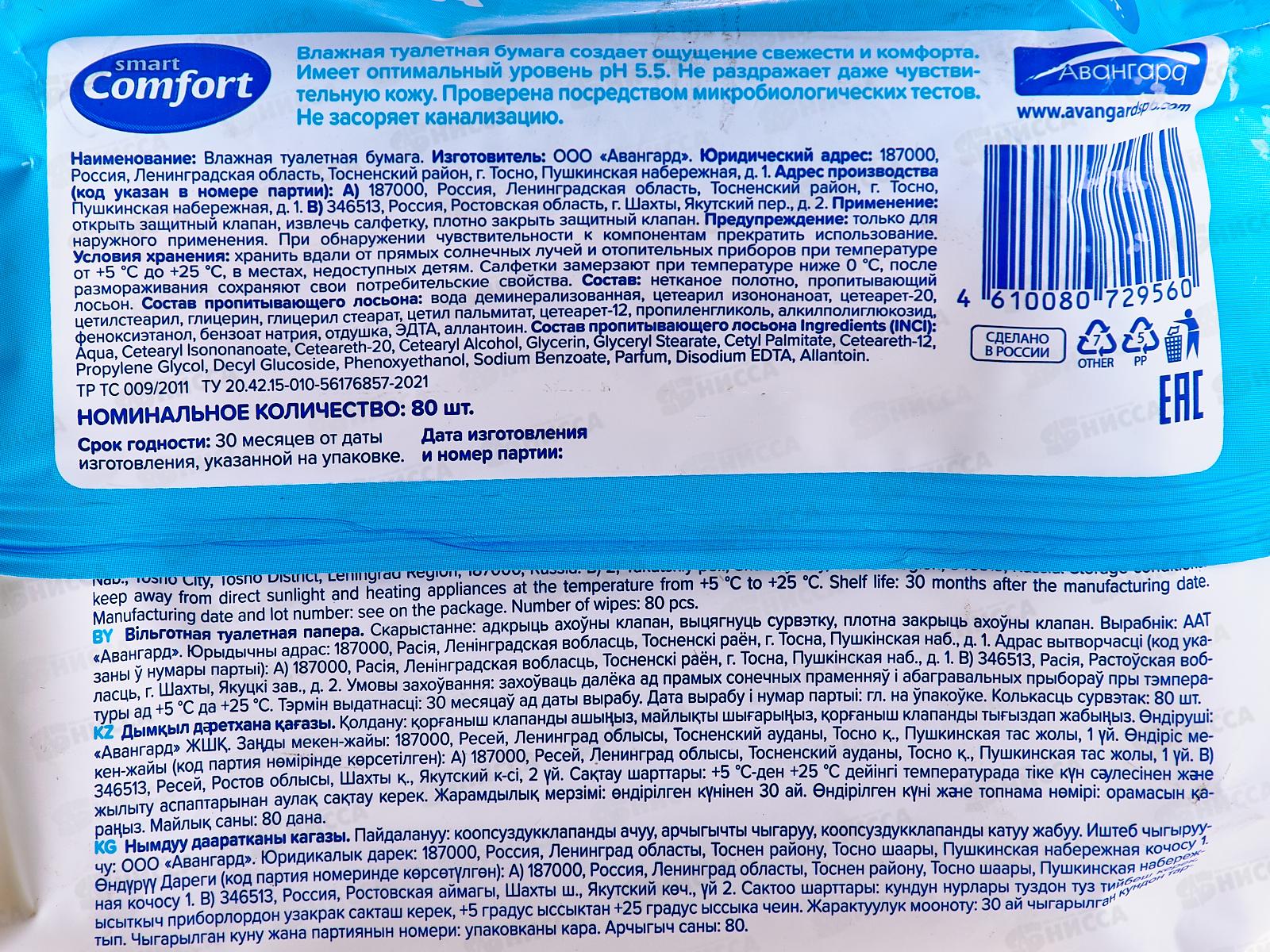 Влажная туалетная бумага Comfort smart 80шт *20 72956