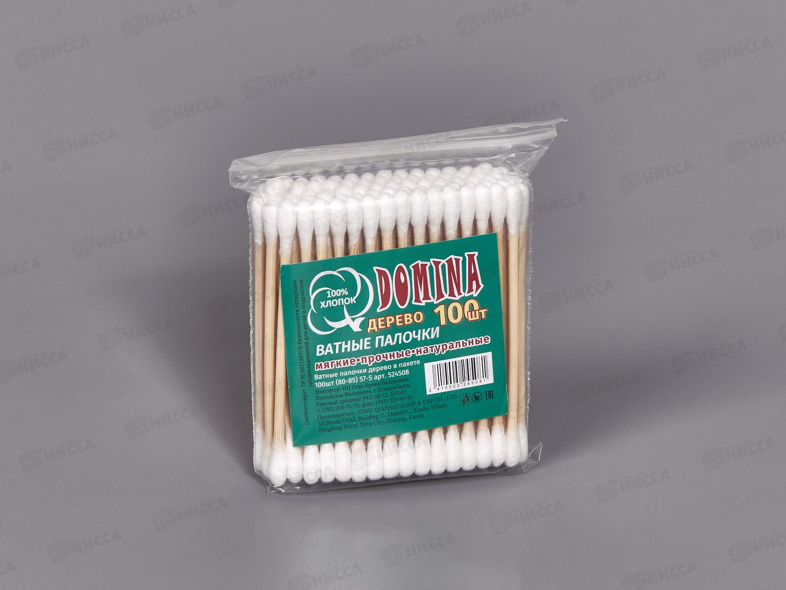 Ватные палочки Domina дерево 100шт пакет 80-85 57-5 *20
