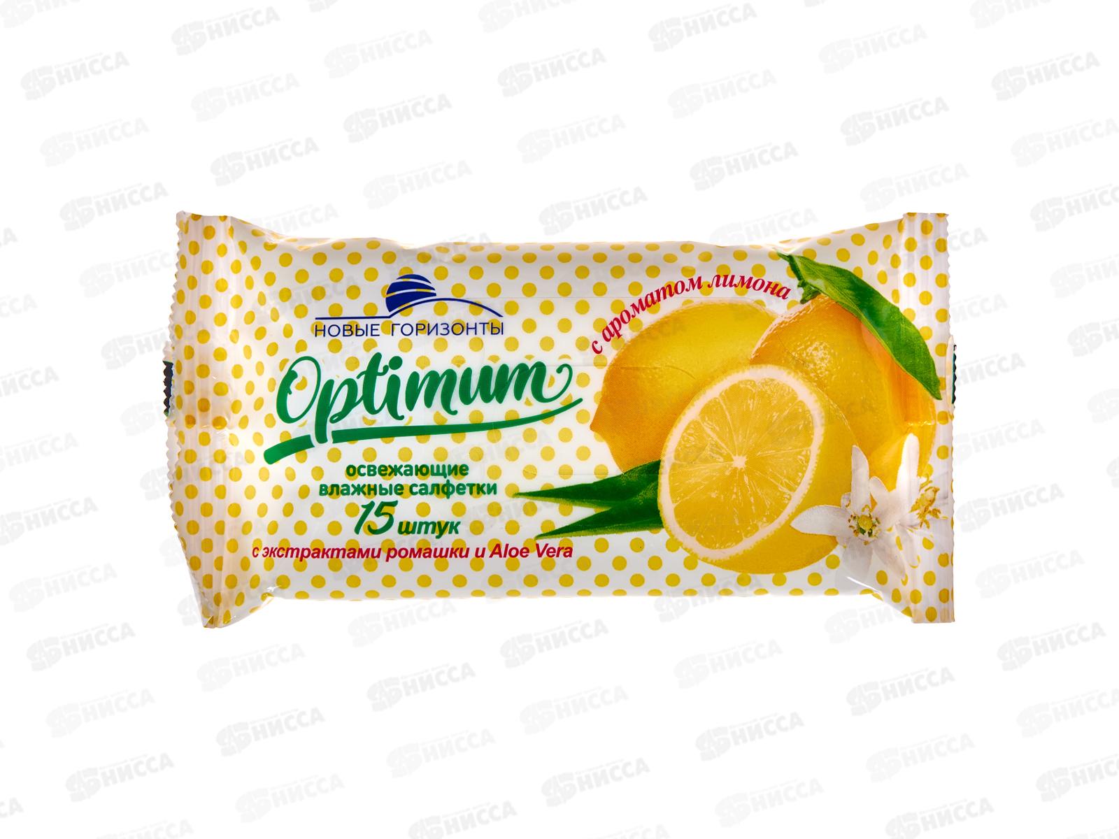 Новые Горизонты влажные салфетки освежающие Оптимум с ароматом лимона 15шт *48