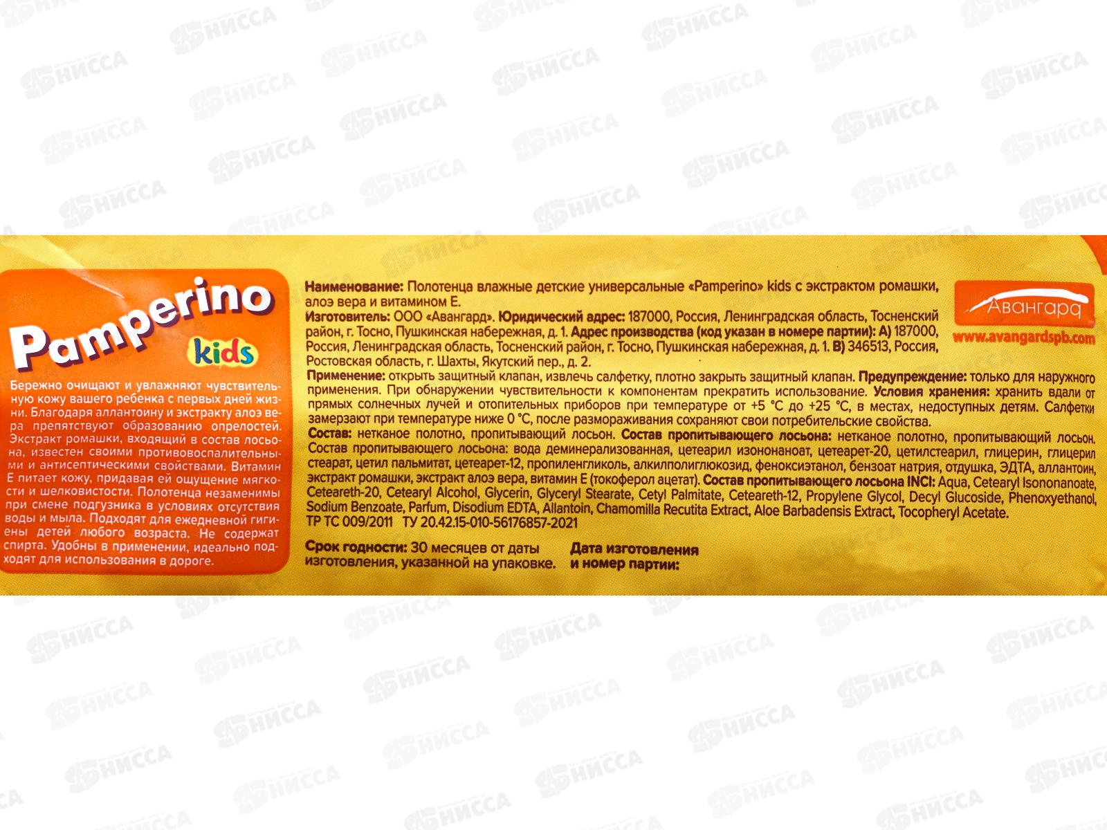 Pamperino Kids влажные полотенца детские с ромашкой алоэ вера и витамином Е №60 80055