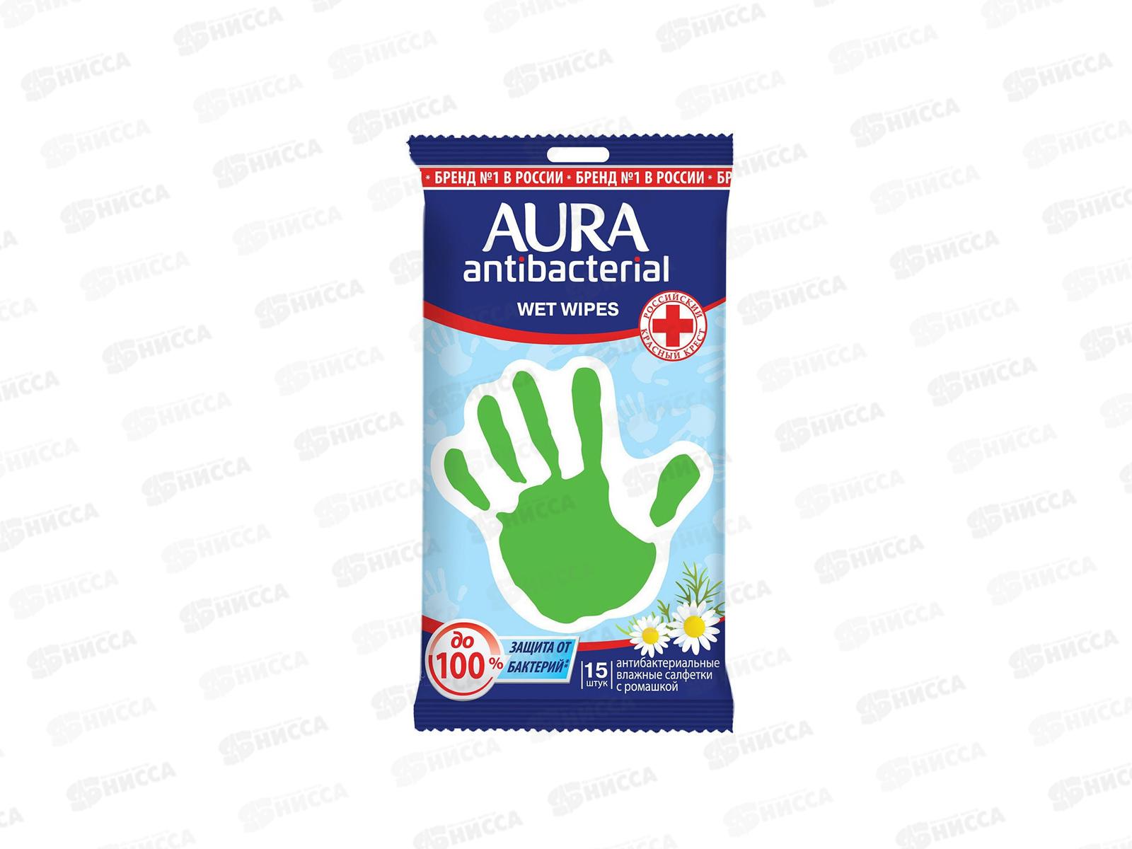 АУРА салфетки влажные антибактериальные РОМАШКА 15шт *24 29544
