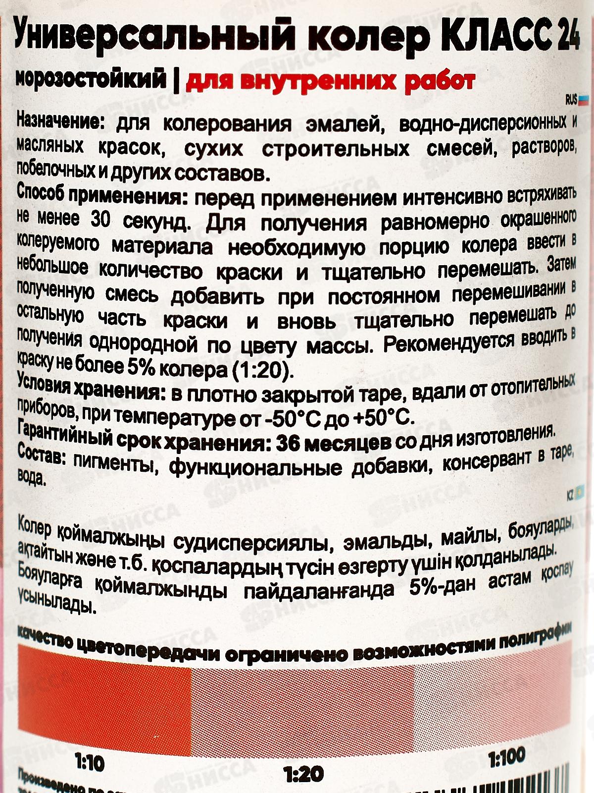 Колер универсальный КЛАСС СЕРИЯ ЛЮКС предназначен для колерования эмалей, водно-дисперсионных и масляных красок, сухих строительных смесей, растворов, побелочных и других составов. Применяется для внутренних и наружных работ. Позволяет получить неограниченное количество цветов и оттенков.