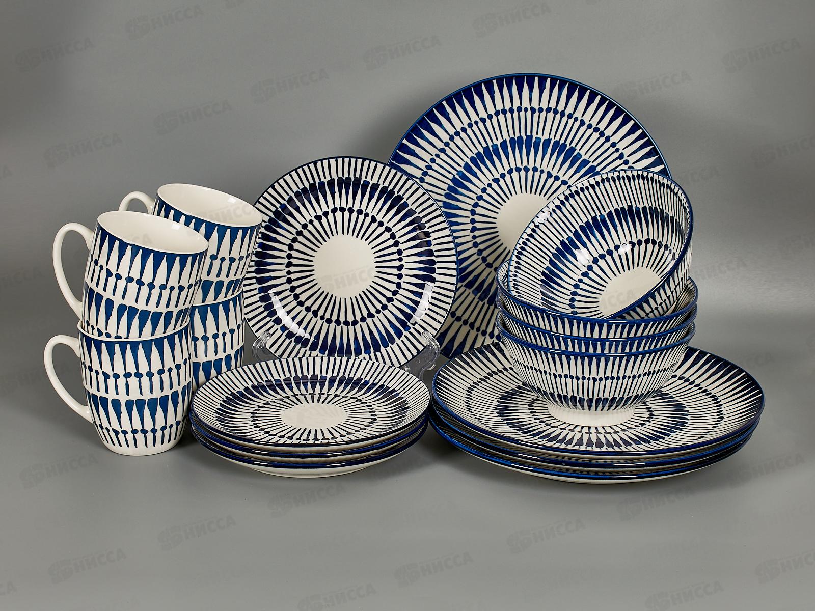 Состав набора: тарелка обеденная d 26,5 см - 4 шт, тарелка десертная d 19 см - 4 шт, салатник d 16 см, 700 мл - 4 шт, кружка 400 мл - 4 шт.