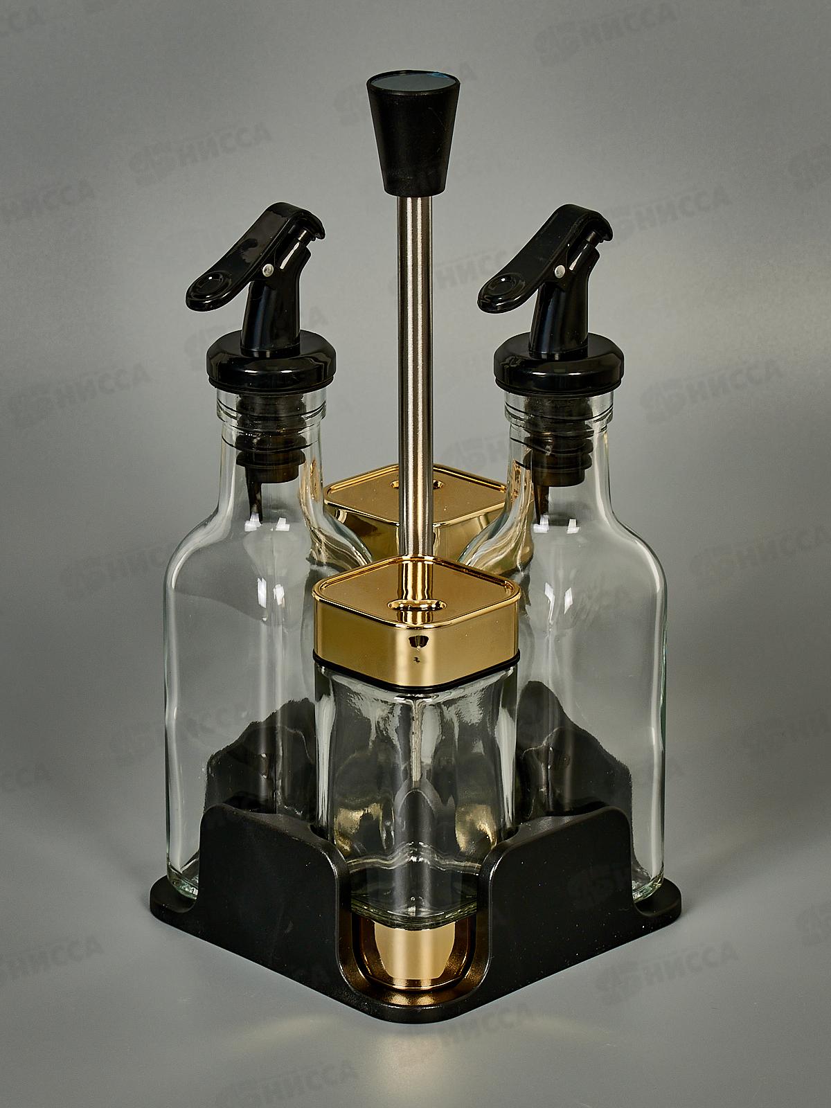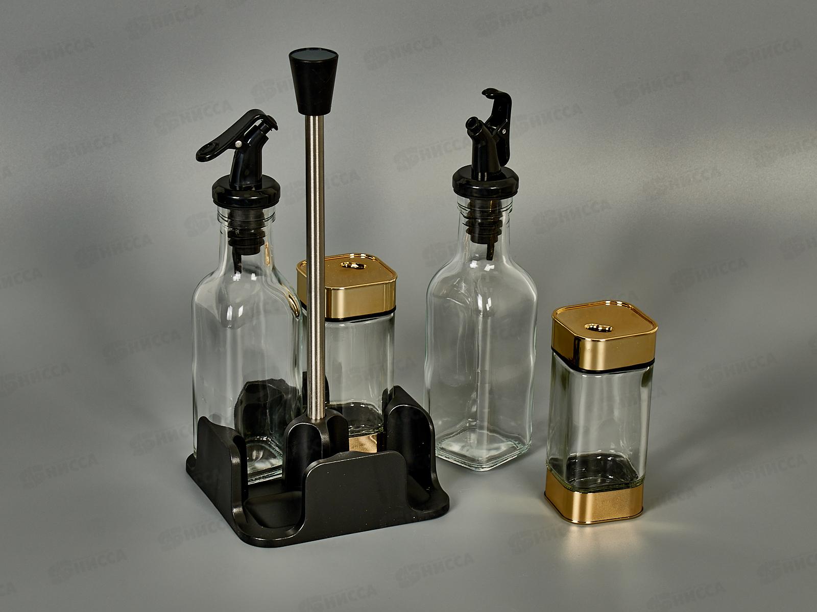 Порядок на кухне зависит от правильной организации. Данный набор очень компактен, вмещает на небольшой платформе четыре емкости: две под уксус или масло и две под различные специи. За счет ручки набор удобно перемещать одним движением. Стильный дизайн впишется в любой интерьер. Состав набора: бутылка для масла 1 шт (180 мл), бутылка для уксуса 1 шт (180 мл), ёмкость для специй 1 шт (120 мл), ёмкость для специй 1 шт (120 мл).