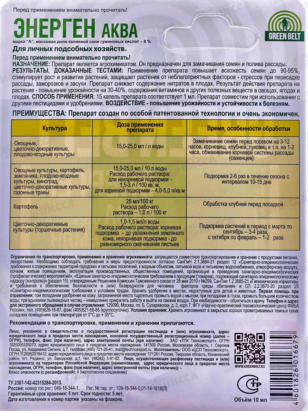 Энерген Аква – жидкое комплексное удобрение. Применяется в качестве предпосевной обработки семян и корневой подкормки рассады. Препарат повышает всхожесть семян, стимулирует рост и развитие растений, защищает растения от неблагоприятных факторов, снижает содержание нитратов в плодах, гарантирует высокую урожайность, повышает содержание витаминов и других полезных веществ в овощах, ягодах и плодах.