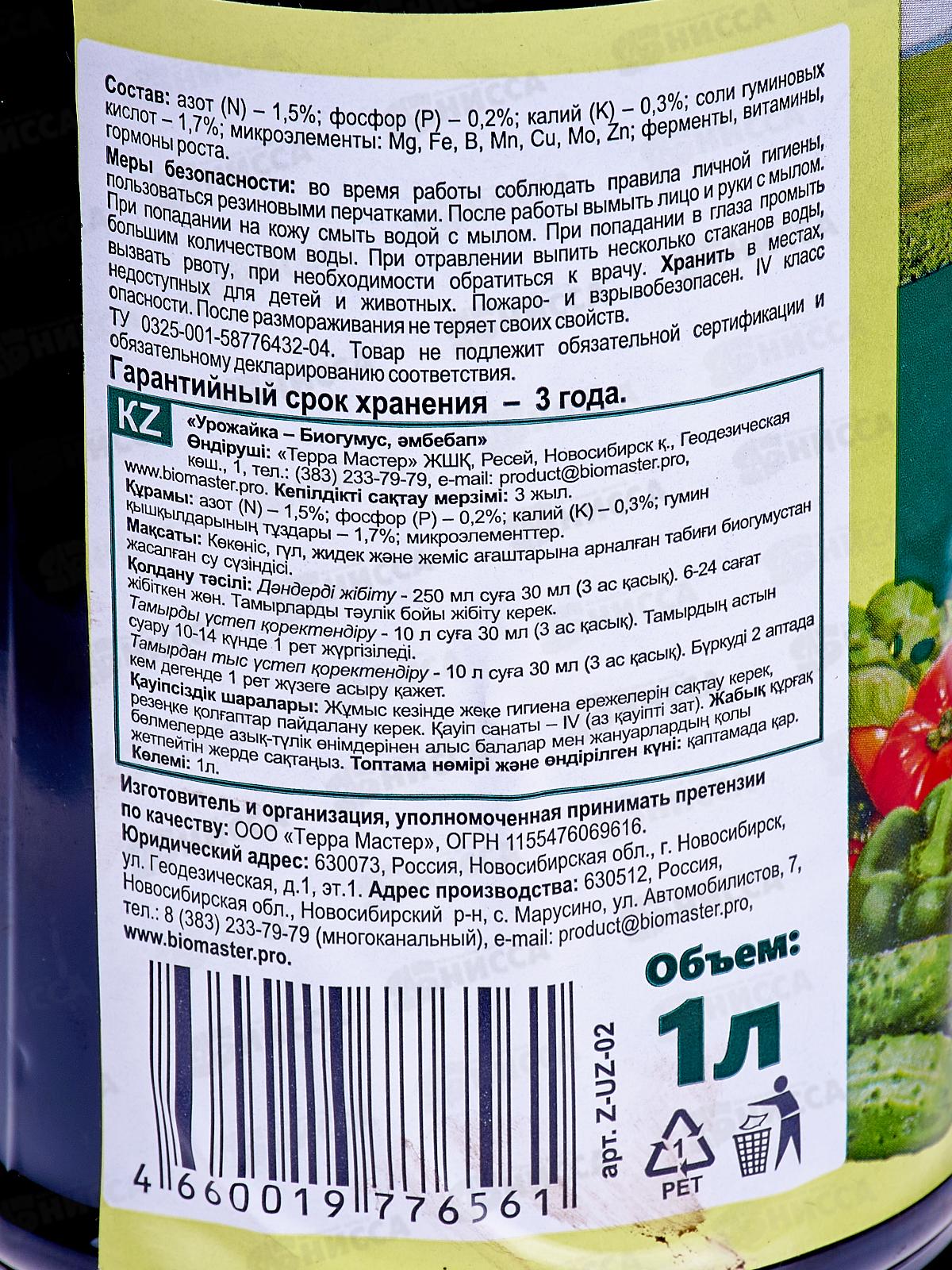 БИО МАСТЕР Биогумус 1л универсальная подкормка *12