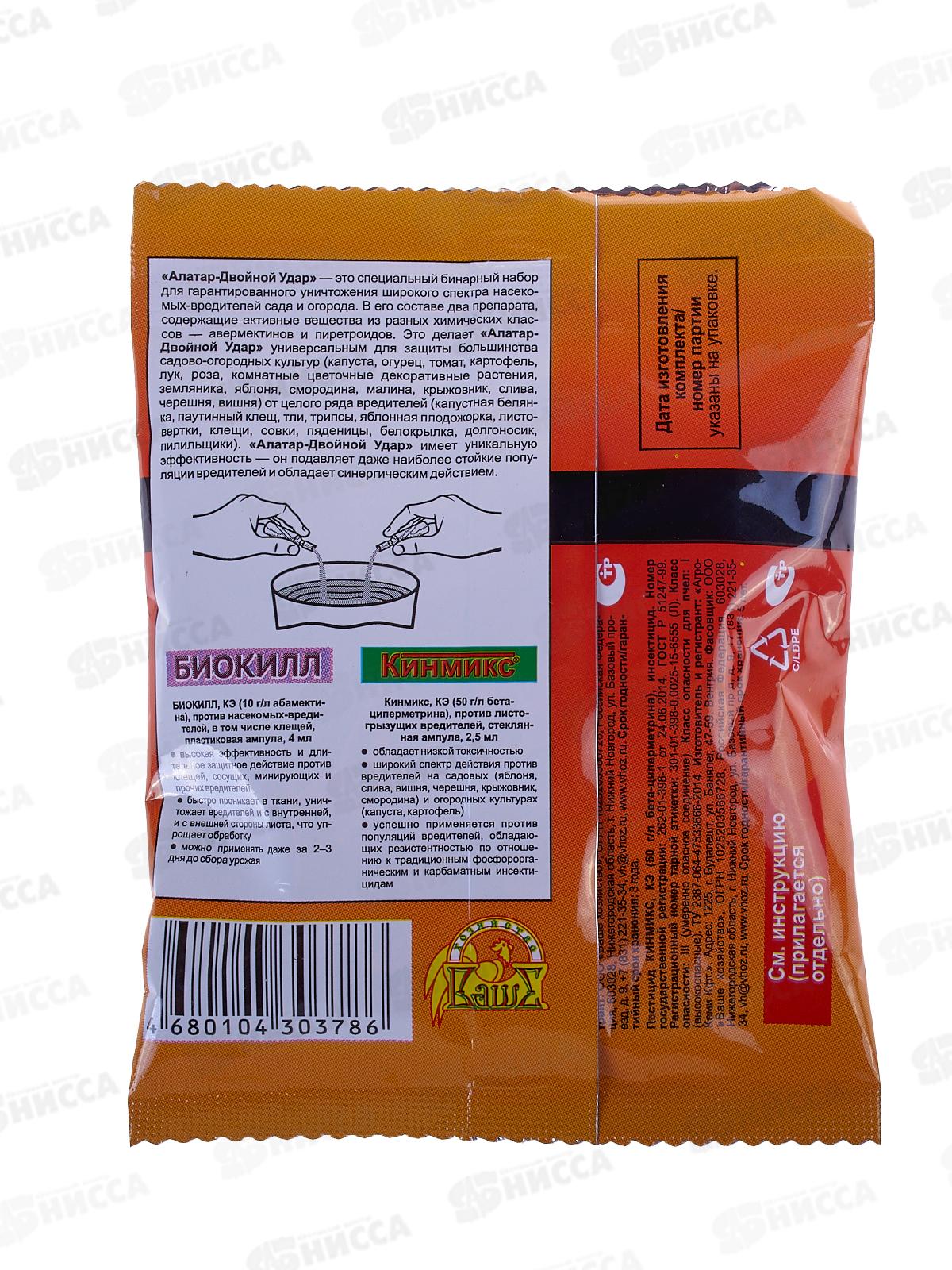 Это специальный бинарный набор для гарантированного уничтожения широкого спектра насекомых-вредителей сада и огорода. В его составе два препарата, содержащие активные вещества из разных химических классов. Это делает "Алатар-Двойной Удар" универсальным для защиты большинства садово-огородных культур от целого ряда вредителей.