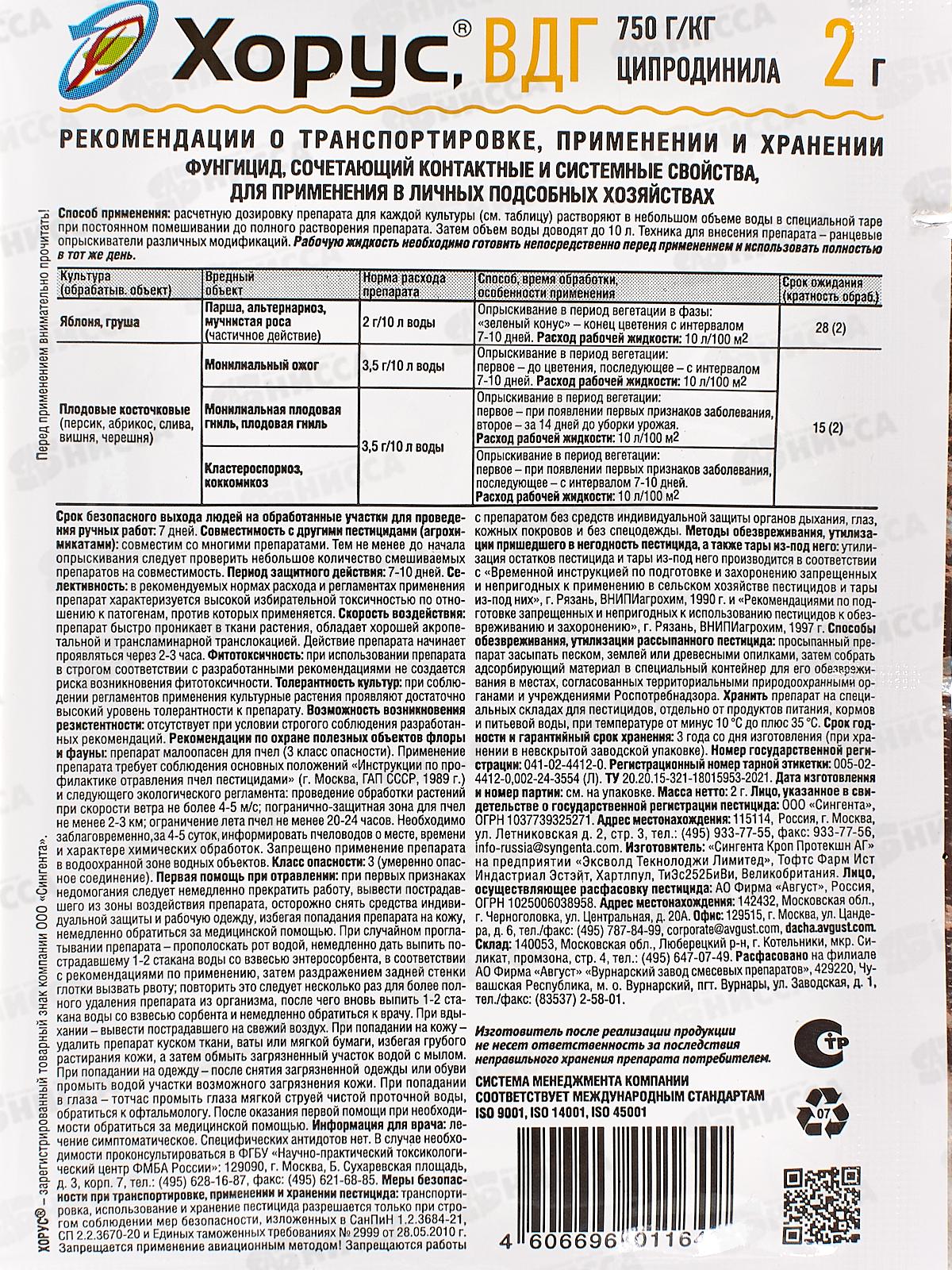 ХОРУС от болезней плодовых 2г *200 Август