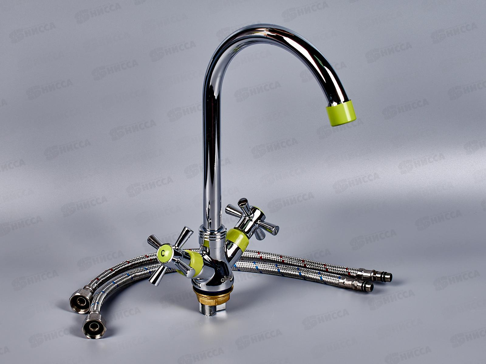 Смеситель для кухни с гайкой, с цветными наконечником и ручками, зелёный, E49118-6