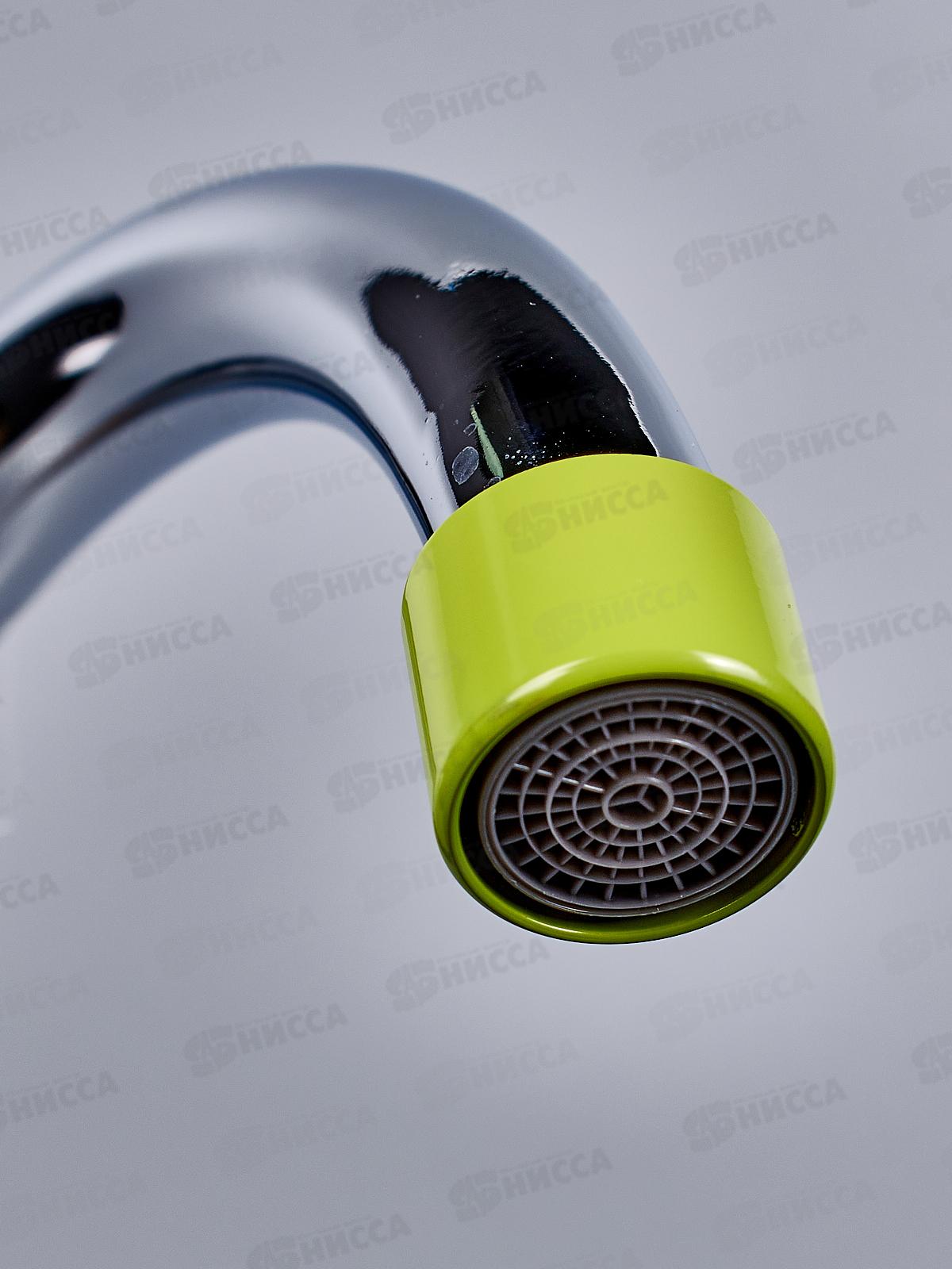 Смеситель для кухни Ekko с гайкой, с цветными наконечником и ручками, салатовый E49118-6 предназначен для крепления на раковину или прилегающую поверхность столешницы. Подходит для разных интерьеров и типов моек. поворотный оснащен аэратором, который существенно понижает уровень шума. Крепится с помощью накидной гайки, которая накручивается на нижнюю часть цилиндрического корпуса самого крана, которая располагается под раковиной. Управление водой производится при помощи керамических кран-букс размером 90 мм, которые обеспечивают точную настройку напора воды.