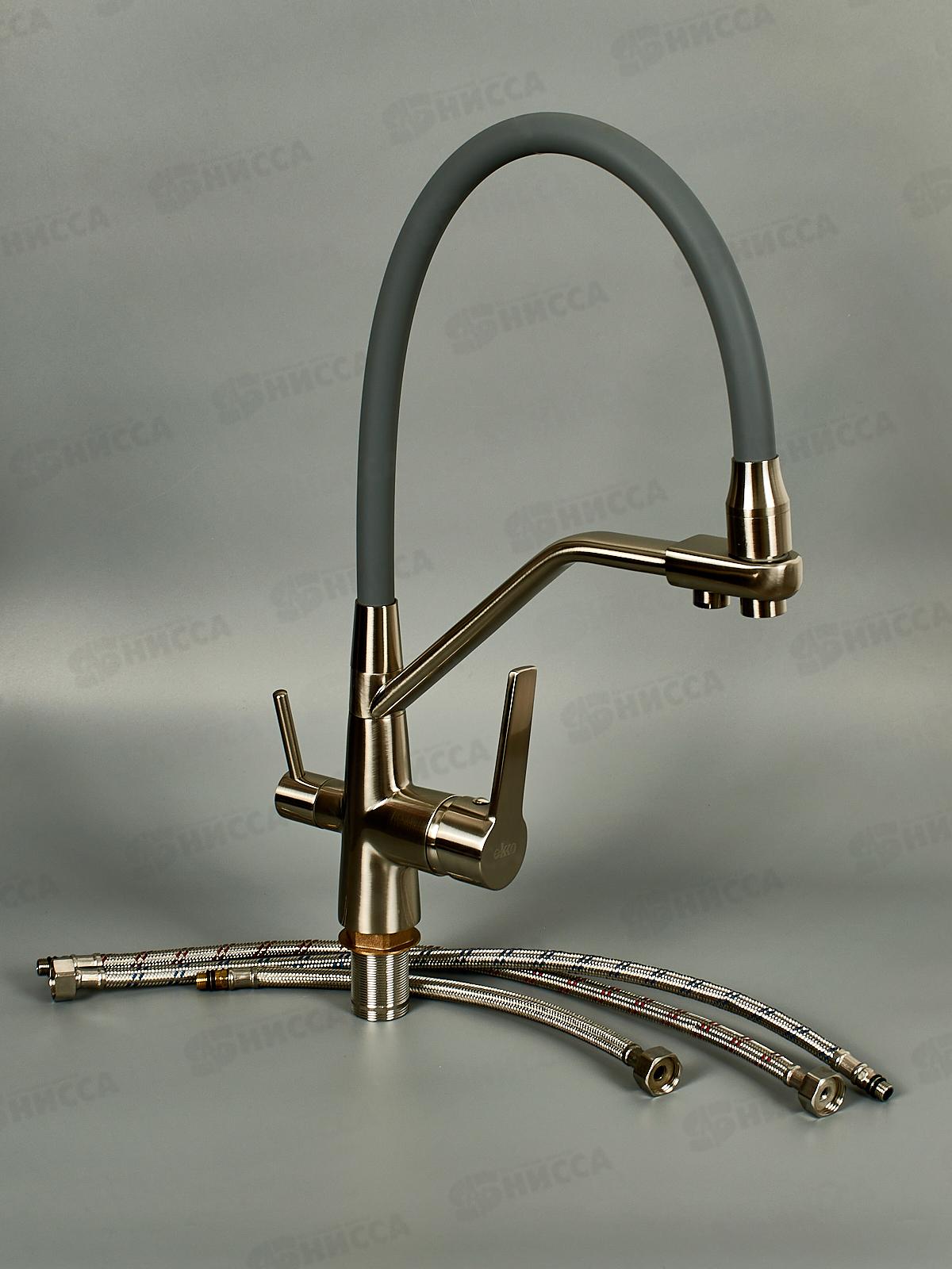 Смеситель д/кухни с подключением питьевой, серый/сатин, EM4460-5