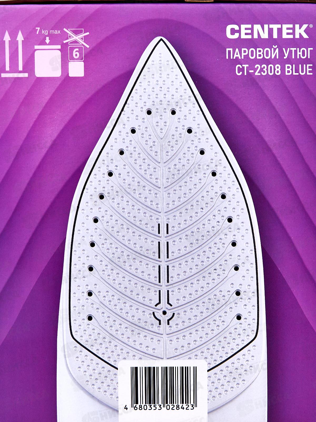 Паровой утюг CENTEK СТ-2308 – идеальное скольжение без усилий! Подошва утюга имеет керамическое покрытие, благодаря чему: утюг служит дольше, устойчива к механическим повреждениям, не портится при контакте с молнией, заклепками или другими декоративным элементам одежды, легко скользит. Узкий носик и тонкая подошва, позволяют выгладить труднодоступные складки. Мощный паровой удар распределяется по специальным желобкам и проникает глубоко в слои ткани, отглаживая даже такие сложные ткани как лен. Увеличенный резервуар, позволяет гладить дольше не доливая воды. Данная модель дополнена системой очистки от накипи и автовыключением.