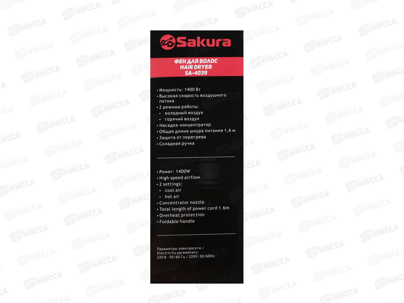 Фен электрический SA-4039V 1400Вт