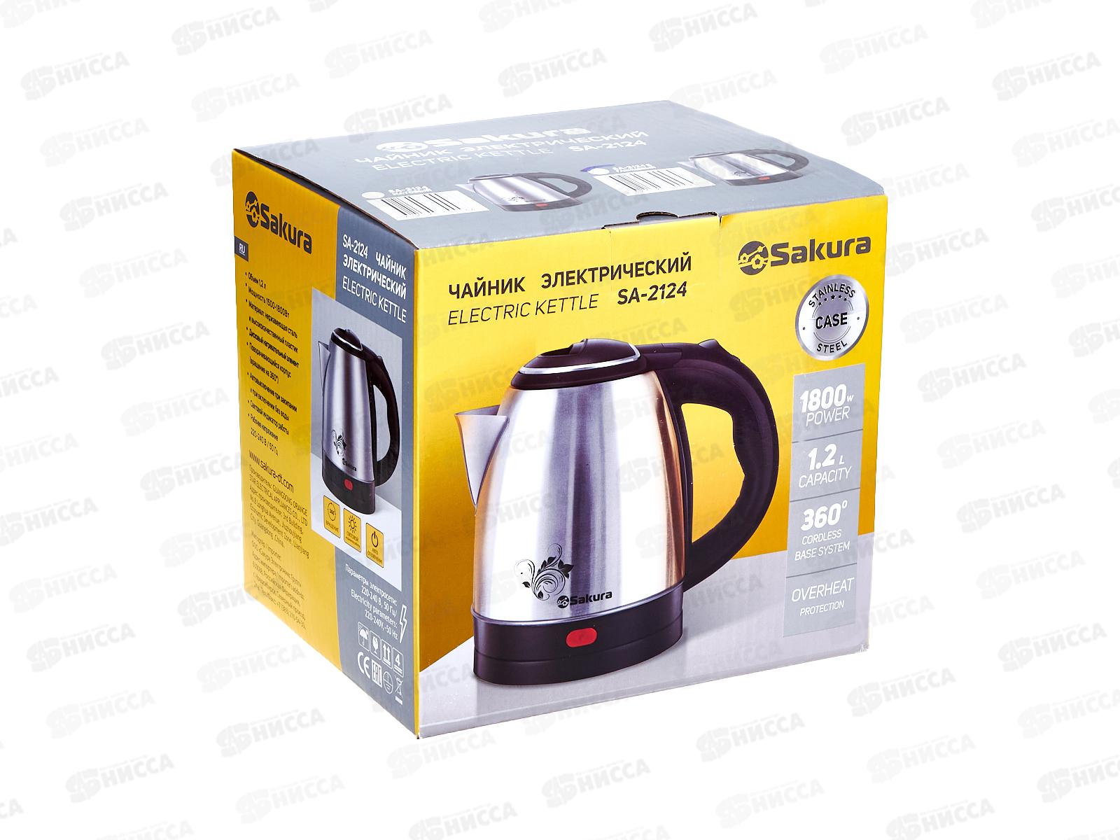Чайник электрический SA-2124S (12) нержавеющая сталь диск