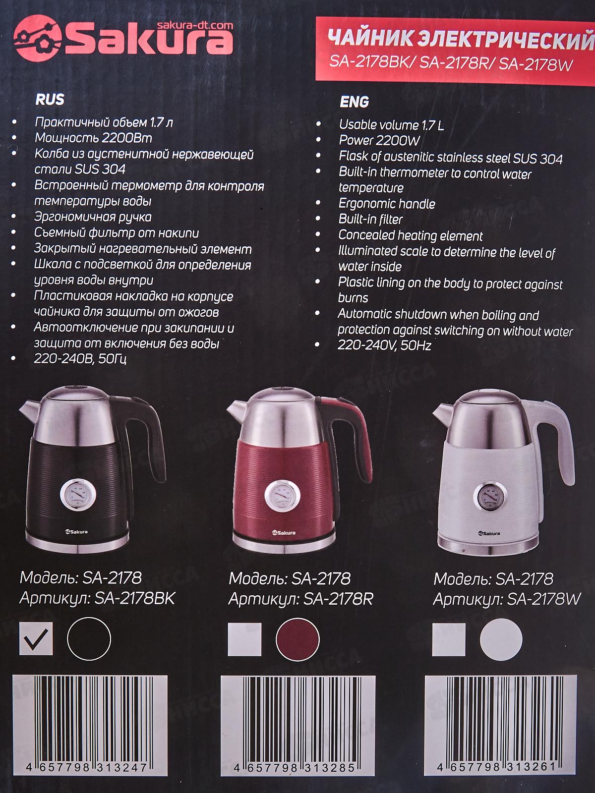 Чайник электрический SA-2178BK Premium 1,7л нержавейка