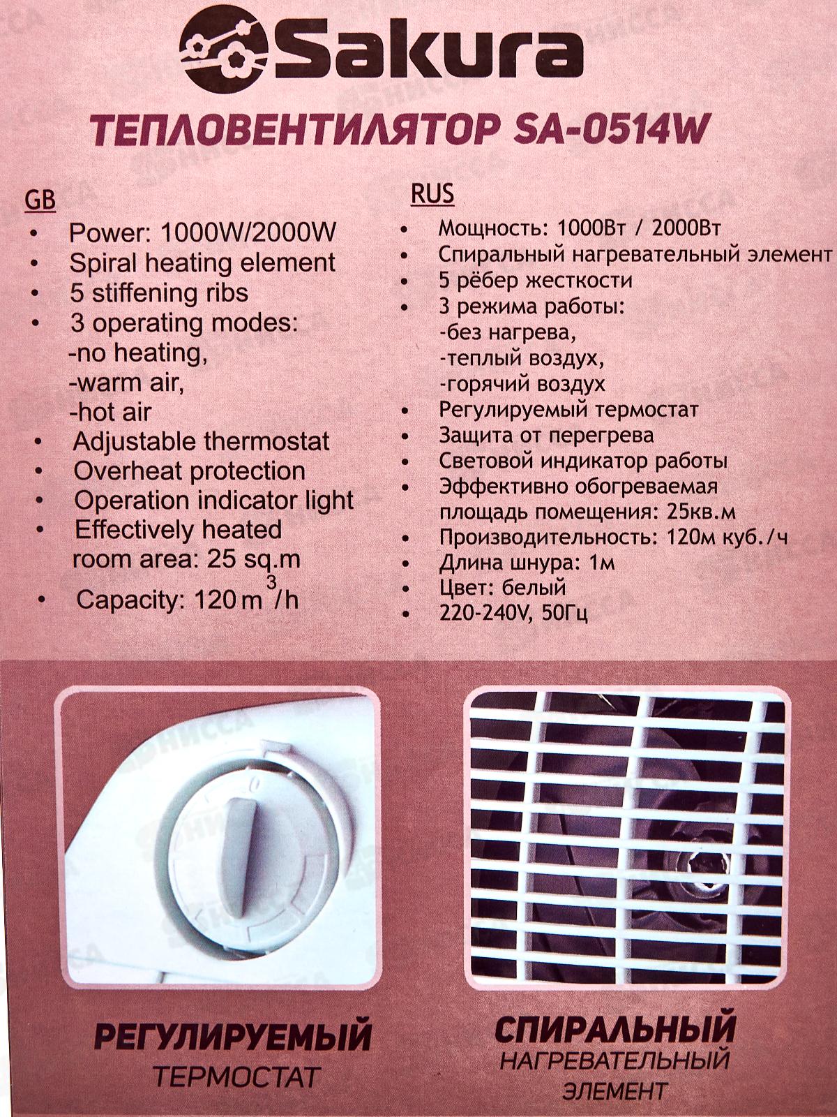 Тепловентилятор SA-0514W белый спиральный нагреватель