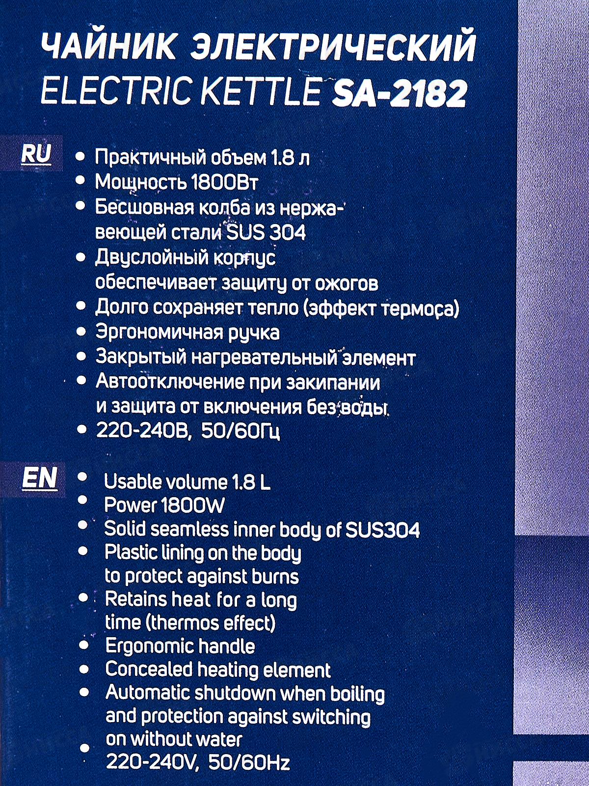 Чайник электрический SA-2182BK 1,8л Черный диск