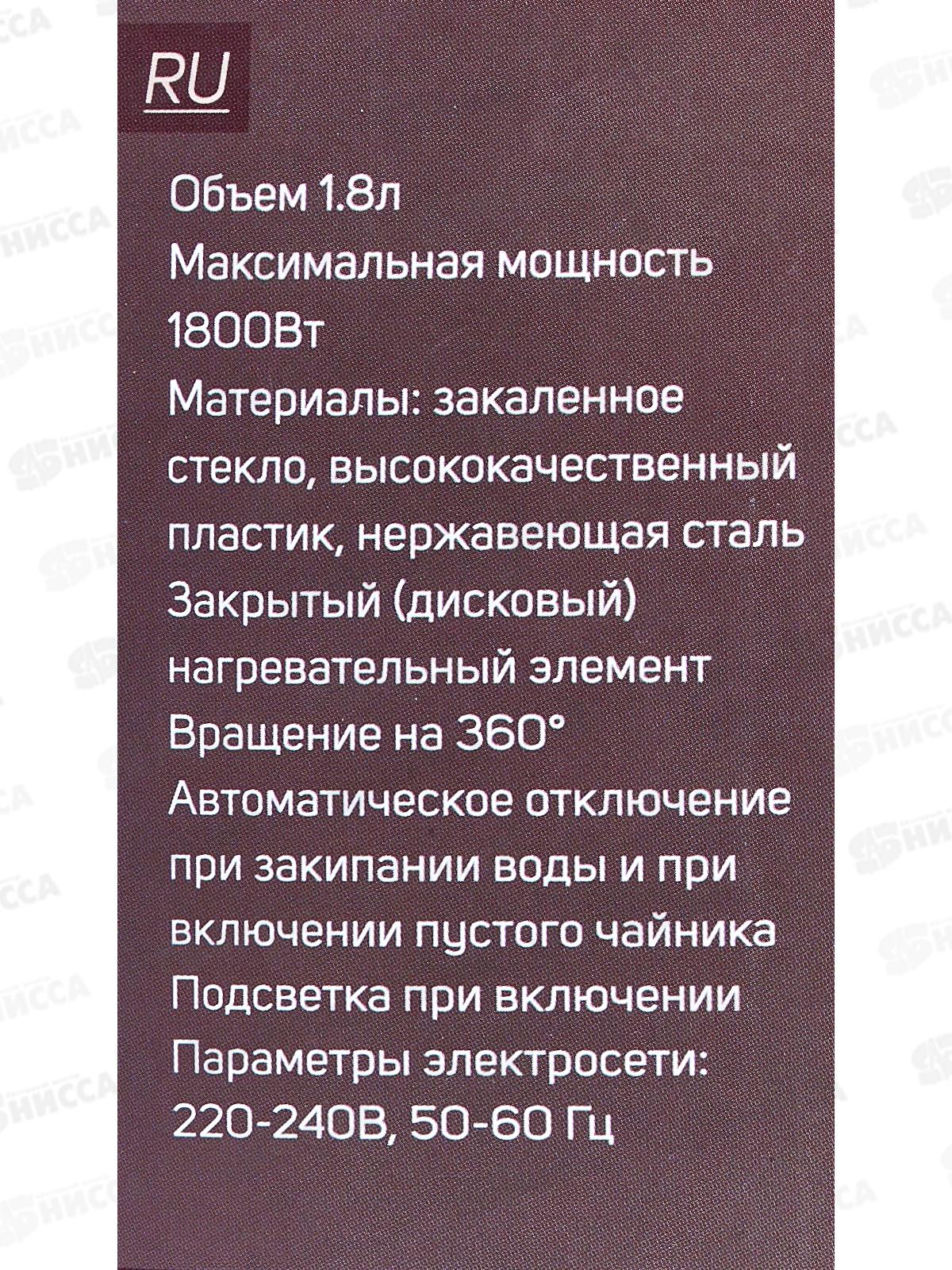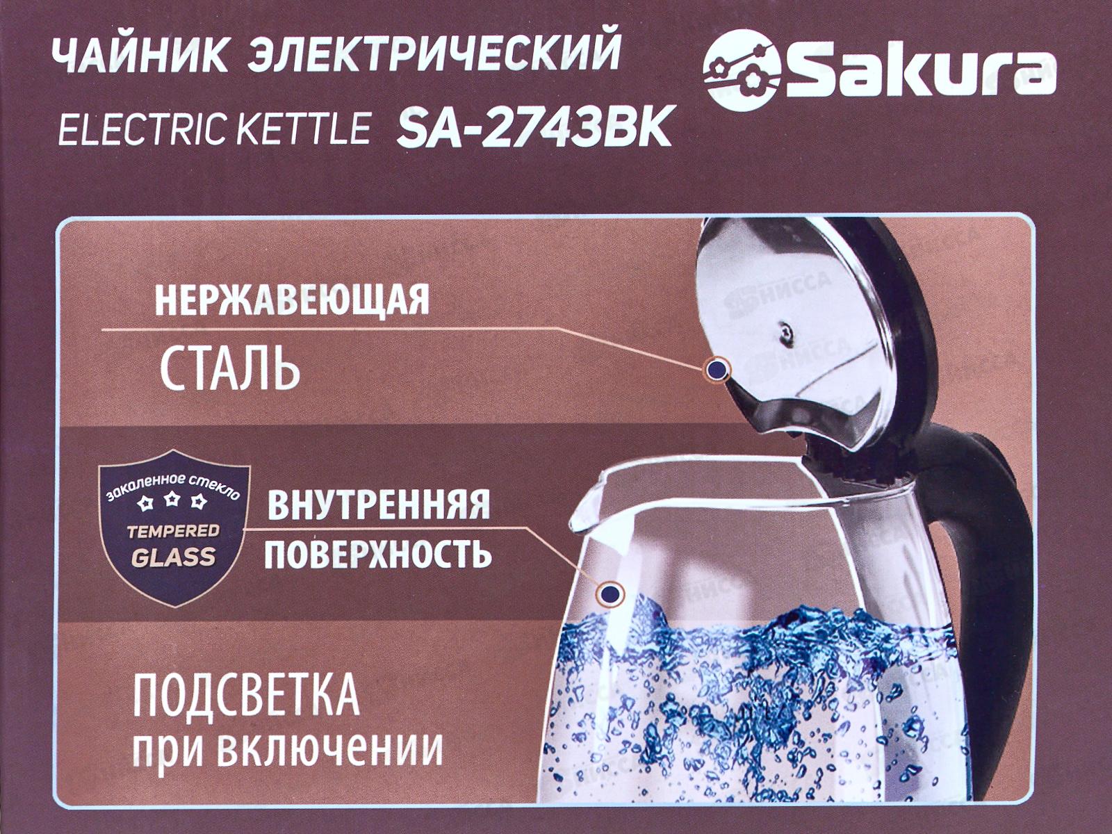 Чайник электр. SA-2743BK 1,8л стекло черн подс