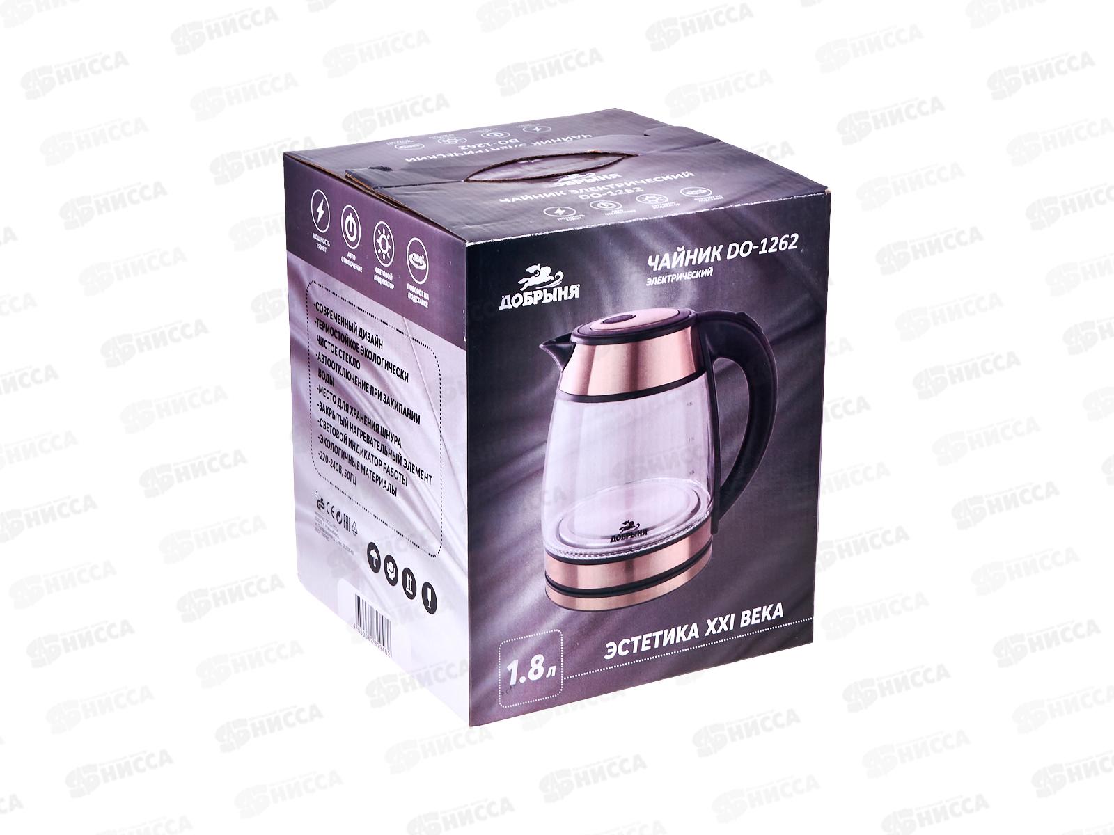Чайник электрический DO-1262 1500Вт 1,8л стекло с медными вставками