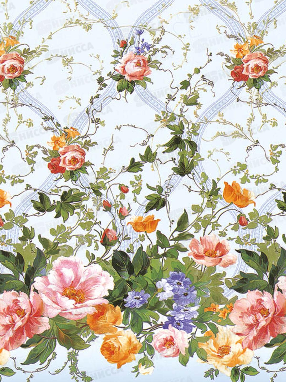 • Клеенка на неткан основе ДЕКОРАМА 1,4*20м 093С цветы на голубом