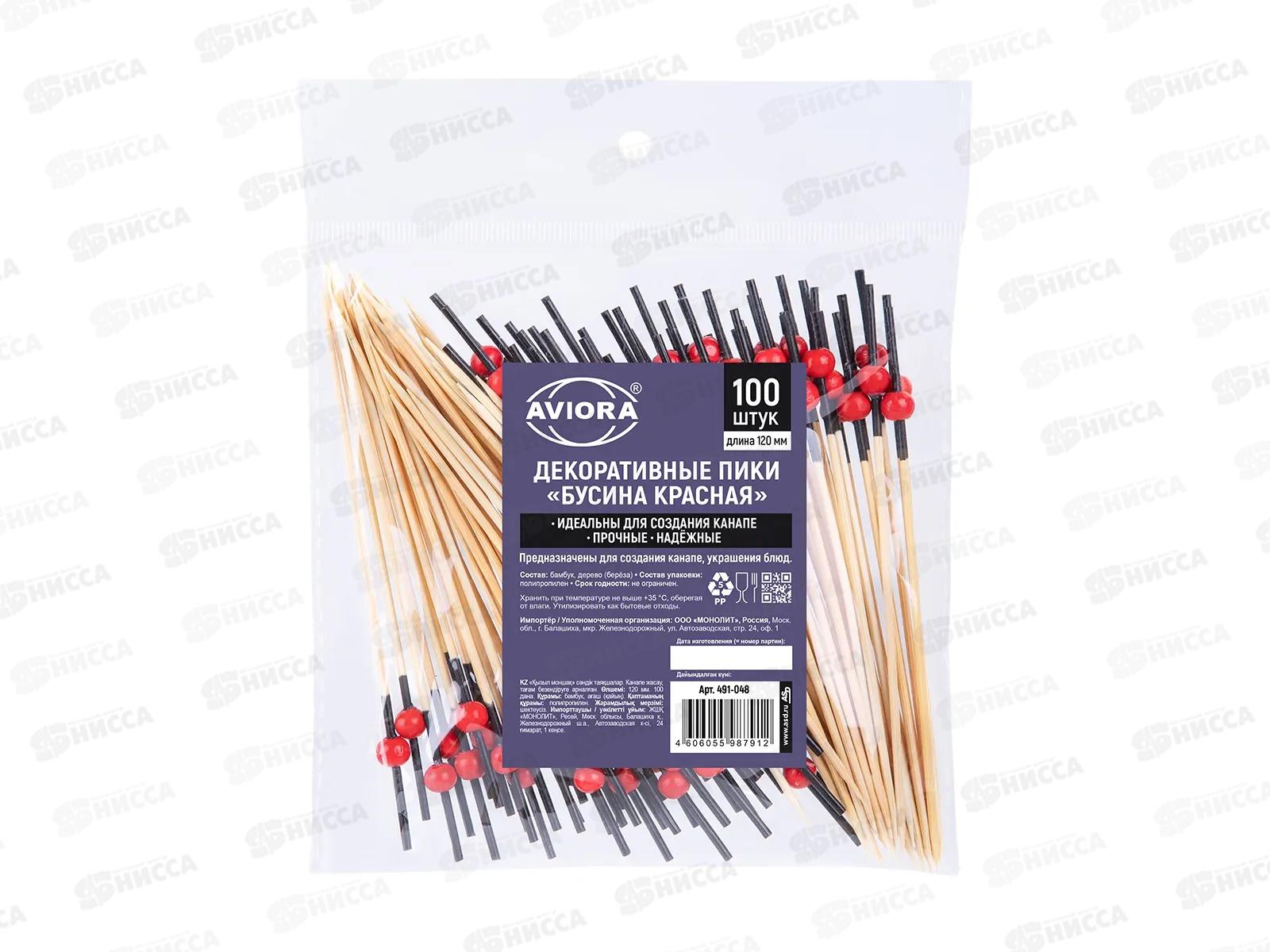 Пики бамбук AVIORA Бусина красная 120мм 100шт пак 491-048 *50